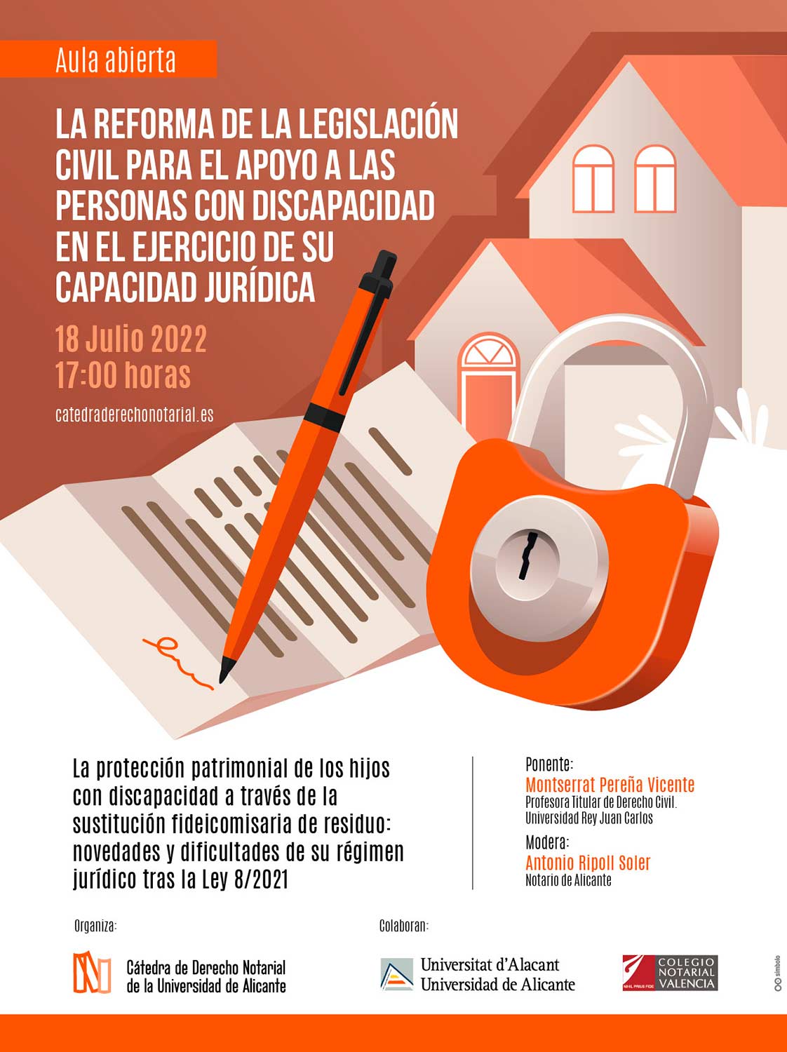 Jornada de la Cátedra de Derecho Notarial de la Universidad de Alicante: "La protección patrimonial de los hijos con discapacidad a través de la sustitución fideicomisaria de residuo, novedades y dificultades de su régimen jurídico tras la Ley 8/2021"