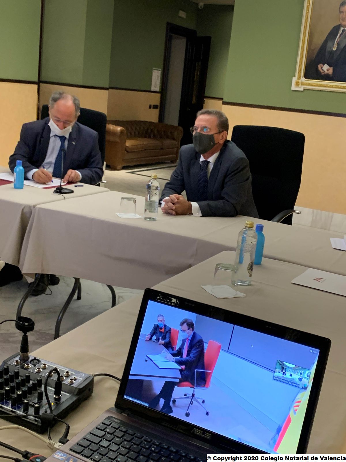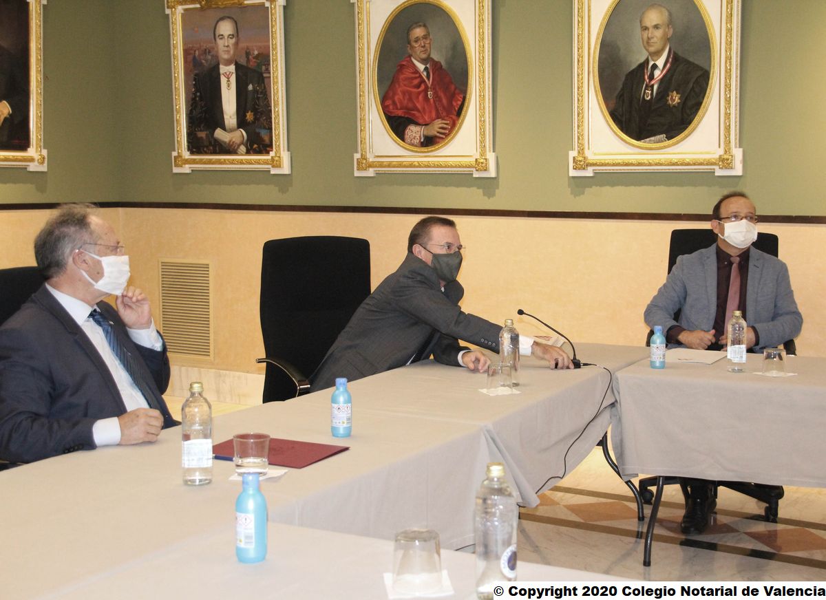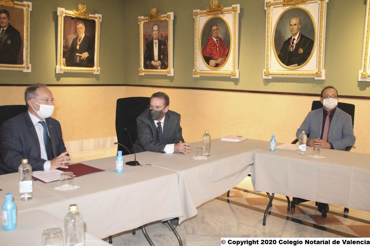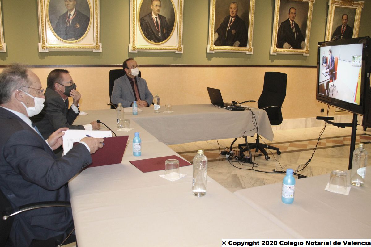 El Col·legi Notarial de València ha acollit la signatura telemàtica del conveni entre el Consell General del Notariat i l'Agència Valenciana Antifrau per a cooperar en la lluita contra la corrupció. Joan Antoni Llinares, director de l'Agència de Prevenció i Lluita contra el Frau i la Corrupció de la Comunitat Valenciana (AVAF), ha signat el conveni des de la seu del Col·legi Notarial a València. Per part seua, José Ángel Martínez Sanchiz ha sigut l'encarregat de subscriure este conveni de col·laboració entre totes dues institucions, com a president del Consell General del Notariat (CGN). Francisco Cantos, degà del Col·legi Notarial de València, i Gustavo Adolfo Segura, director d'Anàlisi i Investigació d'AVAF, també han estat presents en l'acte de signatura telemàtica d'este acord, celebrat en la seu notarial valenciana.