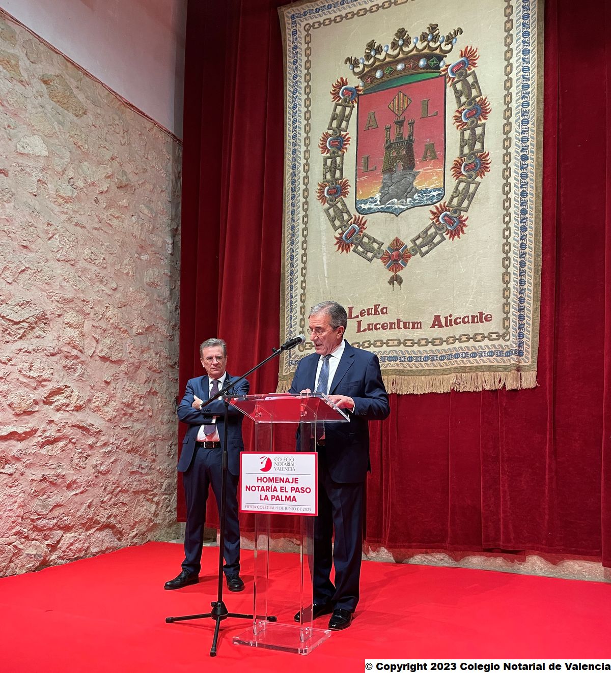 El decano del Colegio Notarial y el alcalde de El Paso, en la galería de decanos del edificio notarial de Valencia