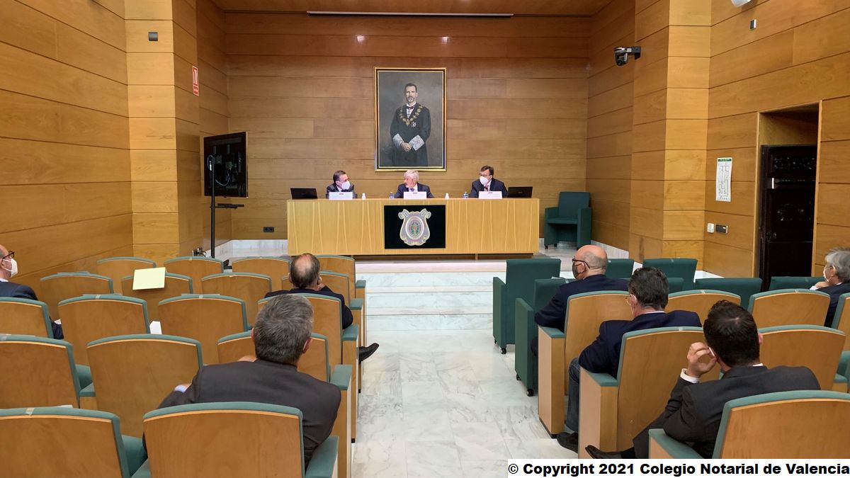 El acto tuvo lugar en la Sala de Conferencia del Colegio Notarial de Valencia ("Salón del Rey") y fue presidido por: