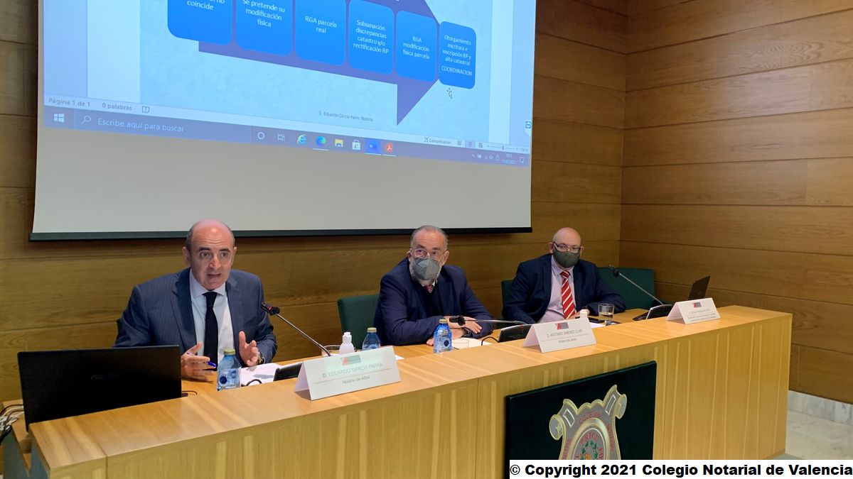 El lunes 17 de mayo, en los salones de la sede del Colegio Notarial en Valencia, se impartió bajo el título "Las comunicaciones Catastro-Notaría en las alteraciones físicas", el curso dirigido a notarios y empleados de notaría, con el objetivo de presentar el programa piloto entre el Catastro y el Colegio Notarial de Valencia y esclarecer los conceptos en el ámbito de las comunicaciones entre el Catastro y las notarías