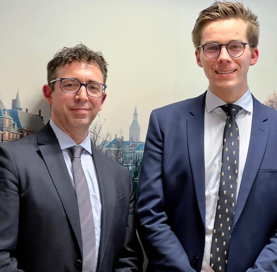 El censor 1º de la Junta Directiva del Colegio Notarial de Valencia y notario de Ayora, José Carmelo Llopis, junto a uno de los representantes del notariado holandés