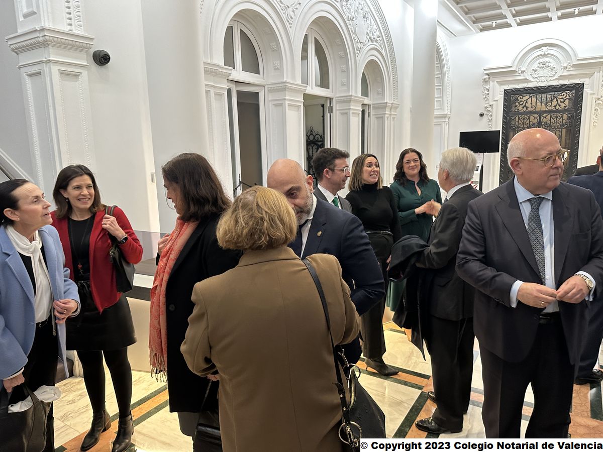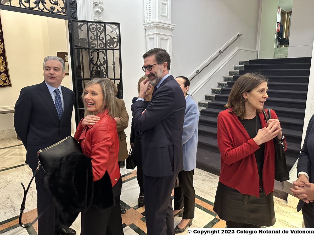 Junto a las nuevas notarias, sus padrinos y familiares, la toma de posesión ha contado con la presencia de muchos notarios de la CV, así como de autoridades del mundo jurídico, judicial, político y académico, como la presidenta del Consell Jurídic Consultiu, Margarita Soler; la presidenta de la Audiencia Provincial de Valencia, María Pilar Esther Rojo; el fiscal jefe de la Fiscalía Provincial de Valencia, José Francisco Ortiz Navarro; el juez decano, César Zenón Calvé; la secretaria de gobierno del TSJCV, Gloria Herráez; el Secretario Autonómico de Vivienda y Función Social, Alejandro Aguilar; la directora general de la Agencia Tributaria, Sonia Encarnación Díaz Español; la concejal del Grupo Popular del Ayuntamiento de Valencia, María José Ferrer San Segundo; además de los decanos de los colegios de Abogados y de Graduados Sociales, José Soriano y Vicente Vercher, respectivamente; y los representantes de las Facultades de Derecho de las distintas universidades como Nuria Martínez (Universidad Católica de Valencia), Esperanza Ferrando (Universidad Cardenal Herrera-CEU), Rosario Serra (Grado de Derecho de la Universitat de València), Carla de Paredes (Universidad Europea de Valencia); o María Julia Candado (Universidad Internacional).