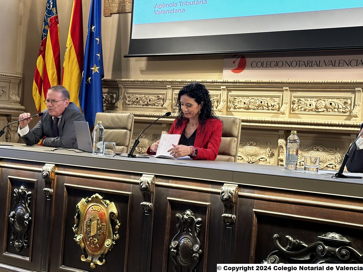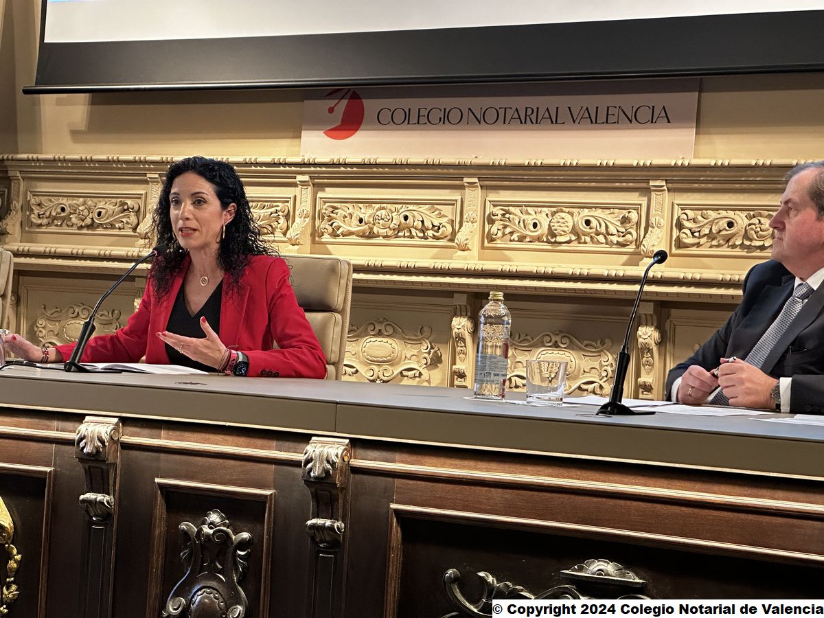 Un momento de la intervención de la directora general de la ATV, Sonia Díaz Español, junto al notario de Valencia, Ubaldo Nieto