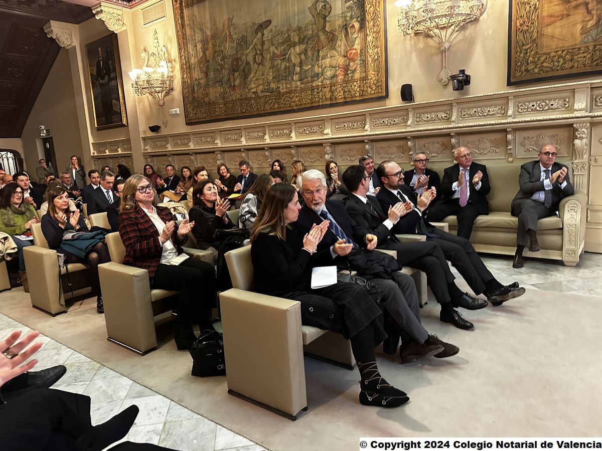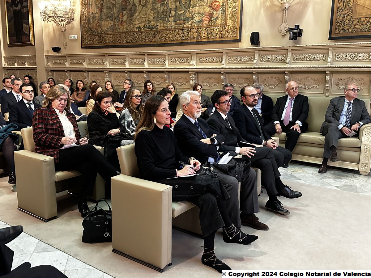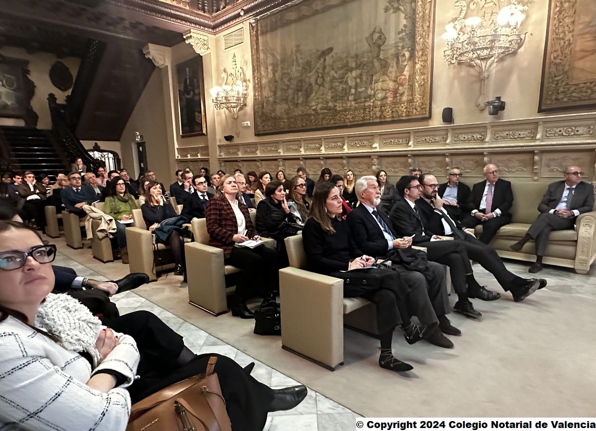 Imagen general del Salón del Rey del Colegio Notarial de Valencia, desde donde se pudo seguir también la conferencia en directo, debido al límite de aforo de la sala principal