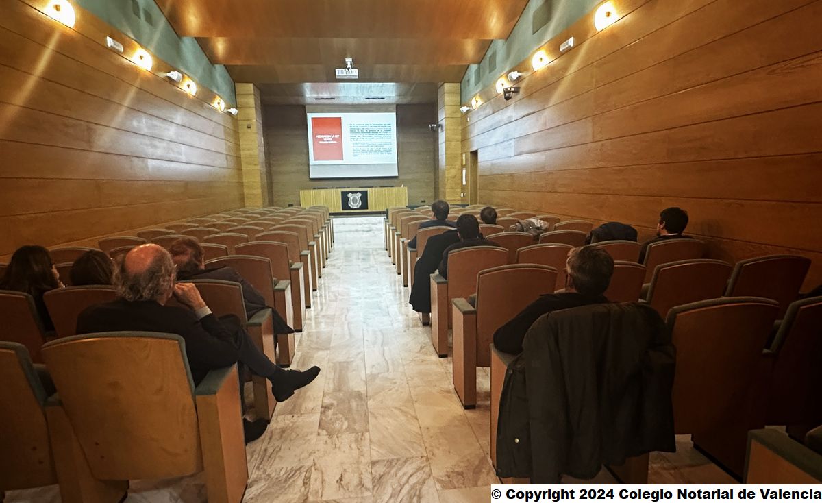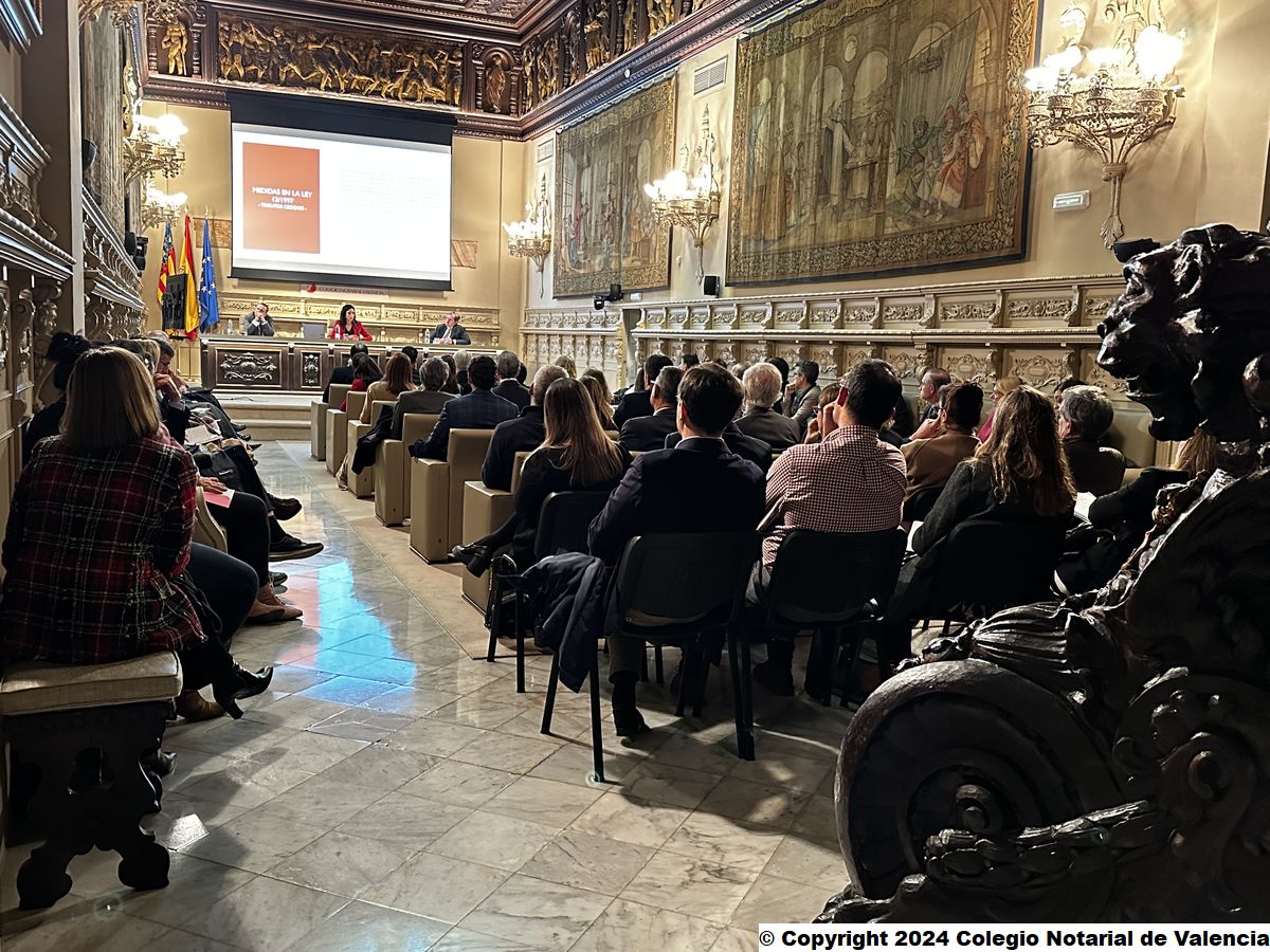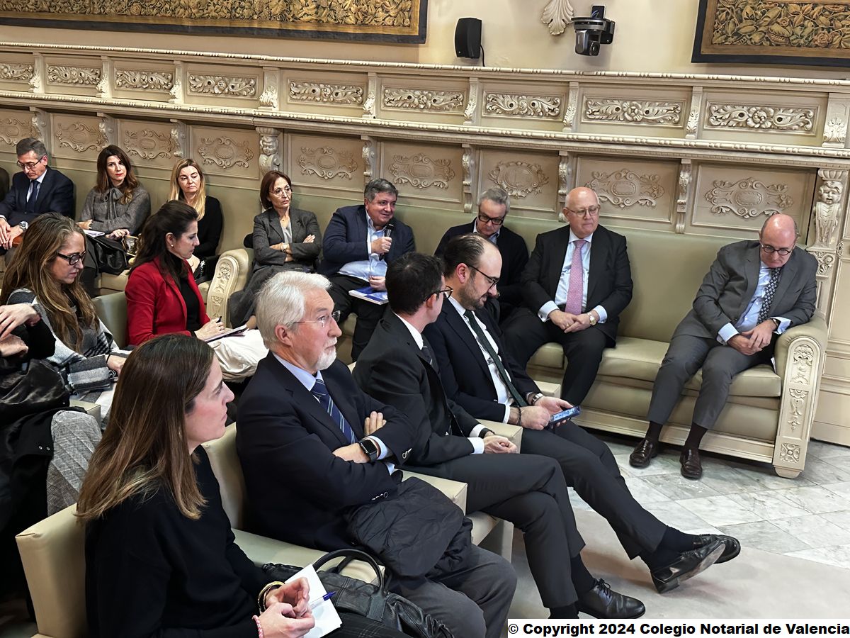 Imagen general del Salón del Rey del Colegio Notarial de Valencia, desde donde se pudo seguir también la conferencia en directo, debido al límite de aforo de la sala principal