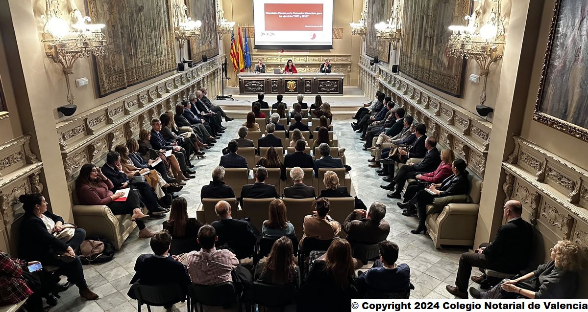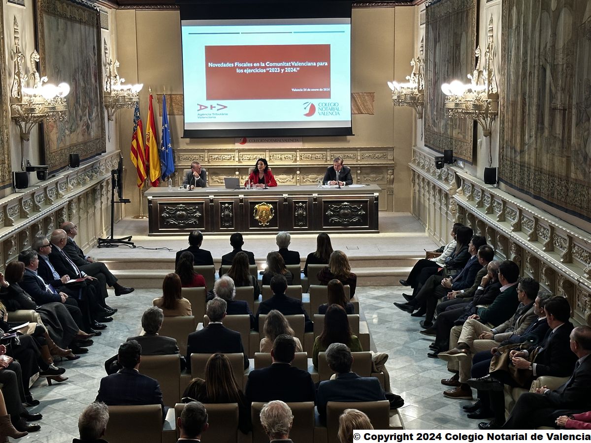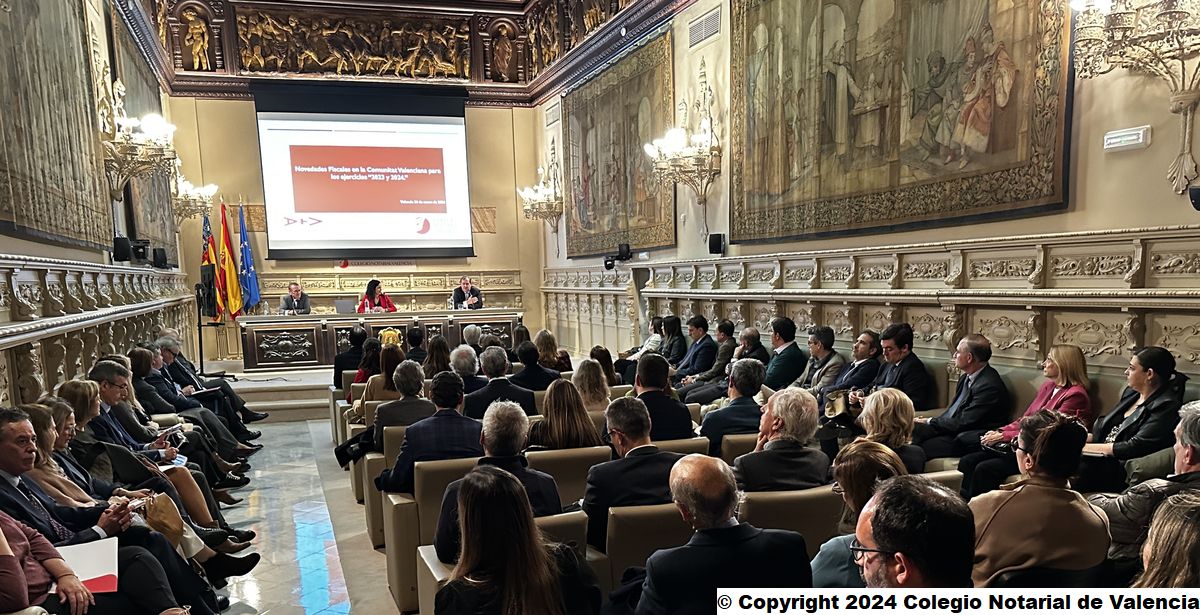Imagen general del Salón de la Reina del Colegio Notarial de Valencia en la conferencia de la directora general de la Agencia Tributaria Valenciana