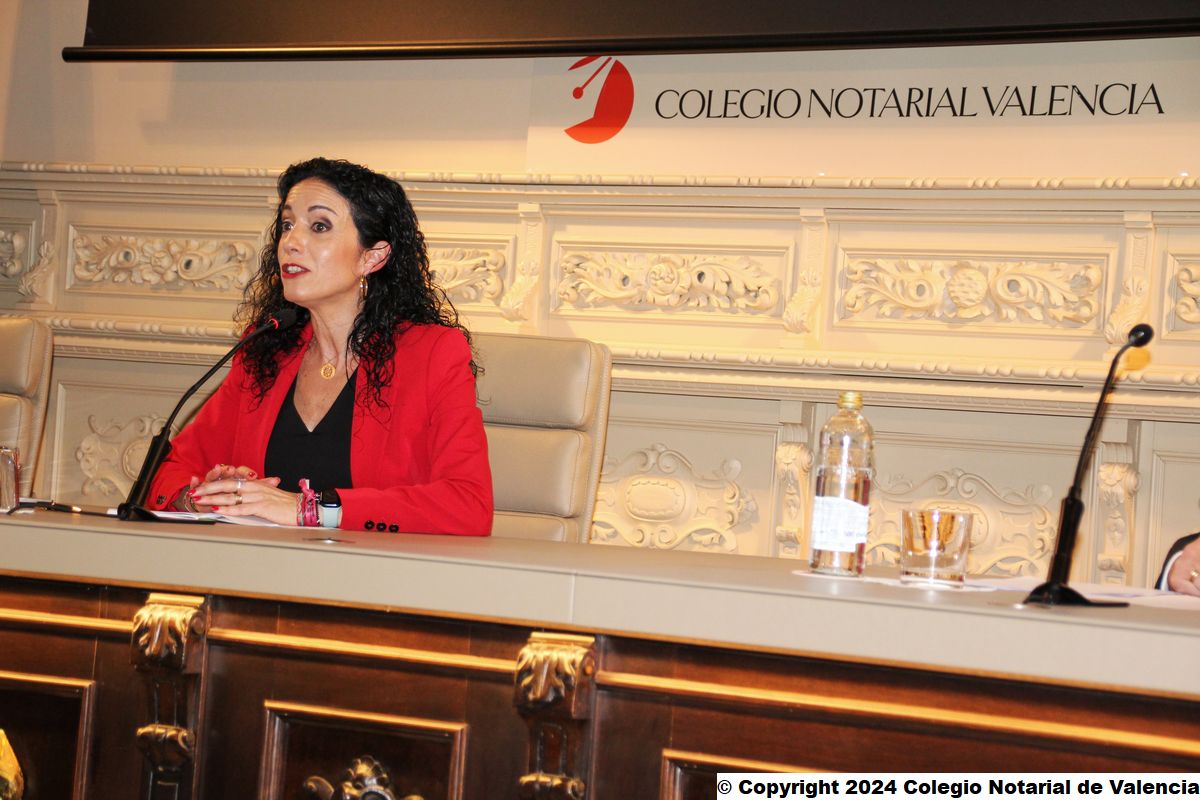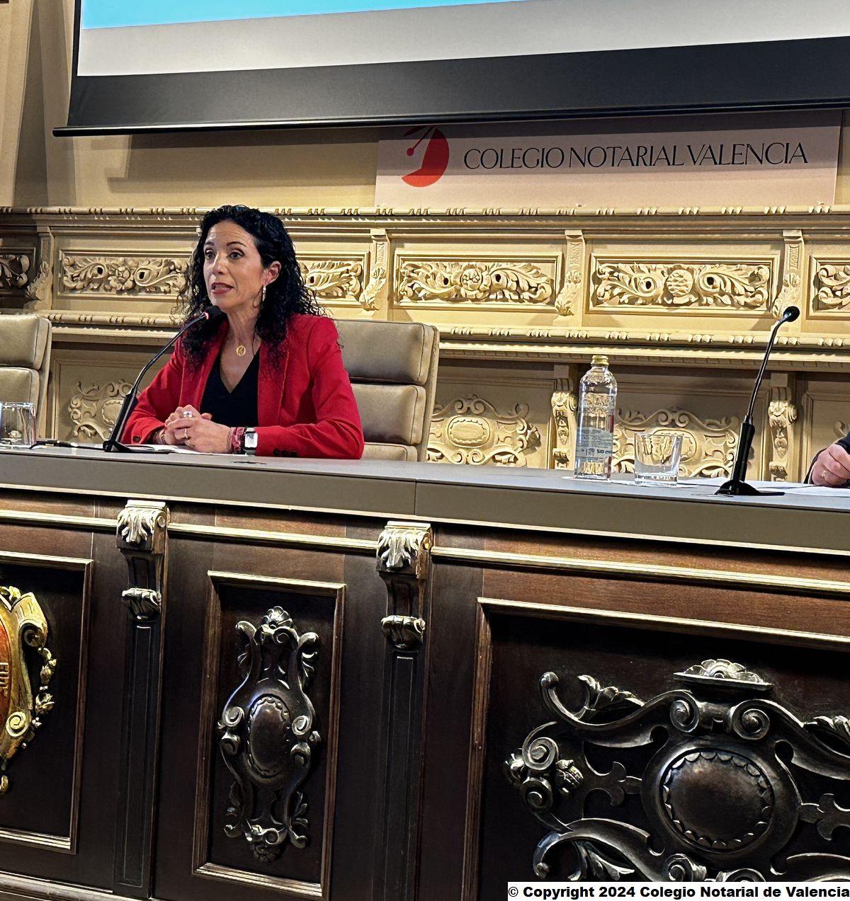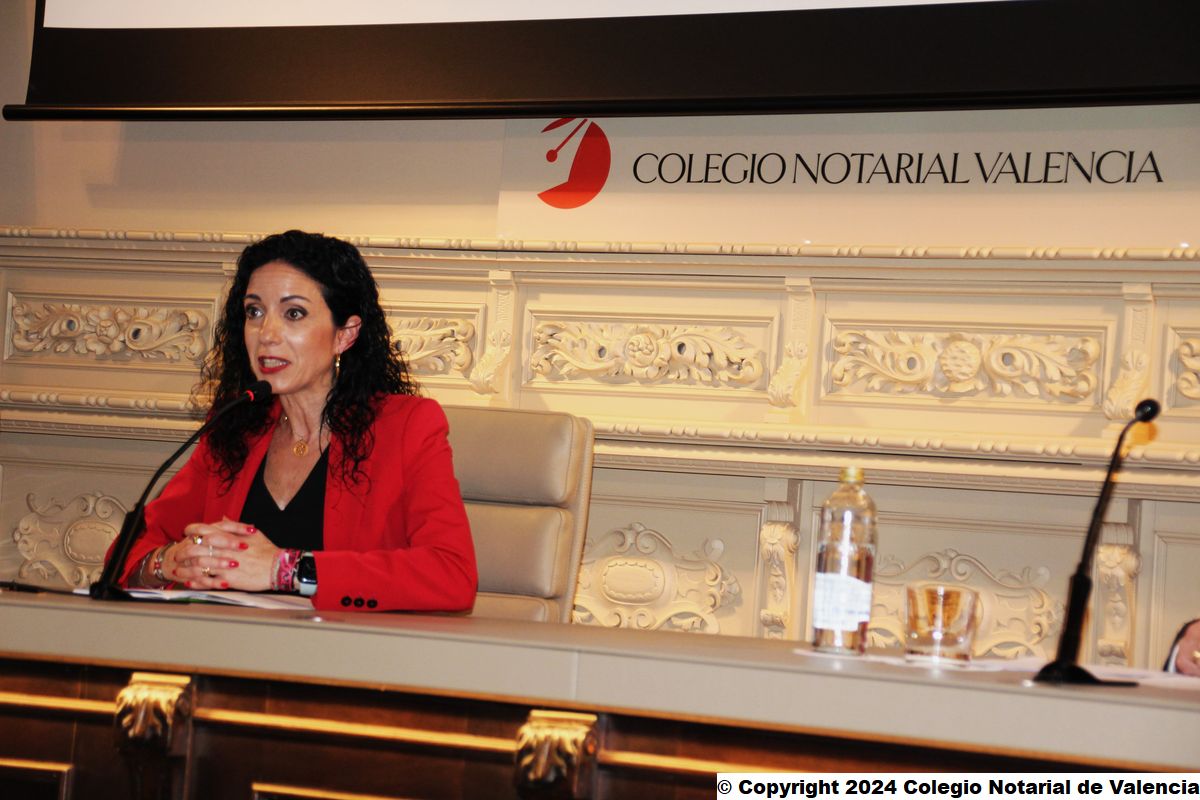 Un momento de la intervención de la directora general de la ATV, Sonia Díaz Español, en el Colegio Notarial de Valencia