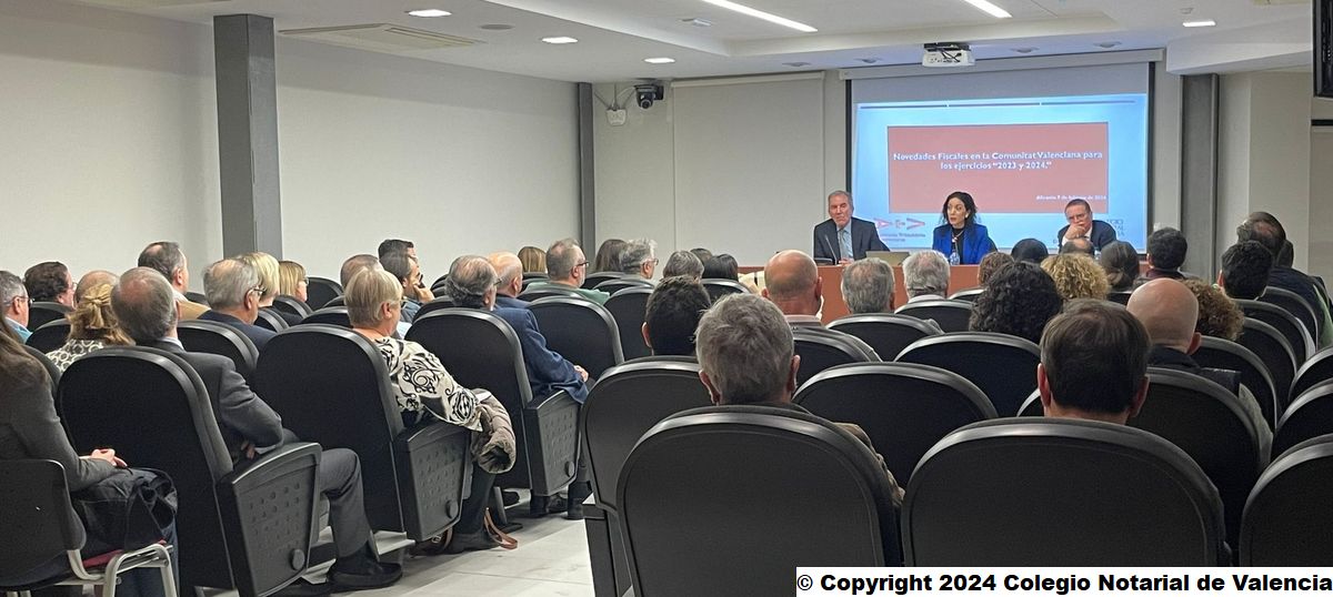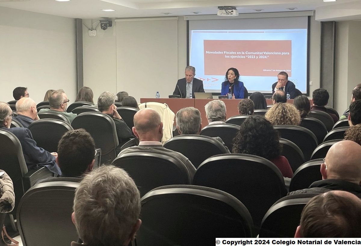 Imagen general del salón de actos de la delegación de Alicante del Colegio Notarial, en la conferencia impartida por la directora general de la ATV, Sonia Díaz Español