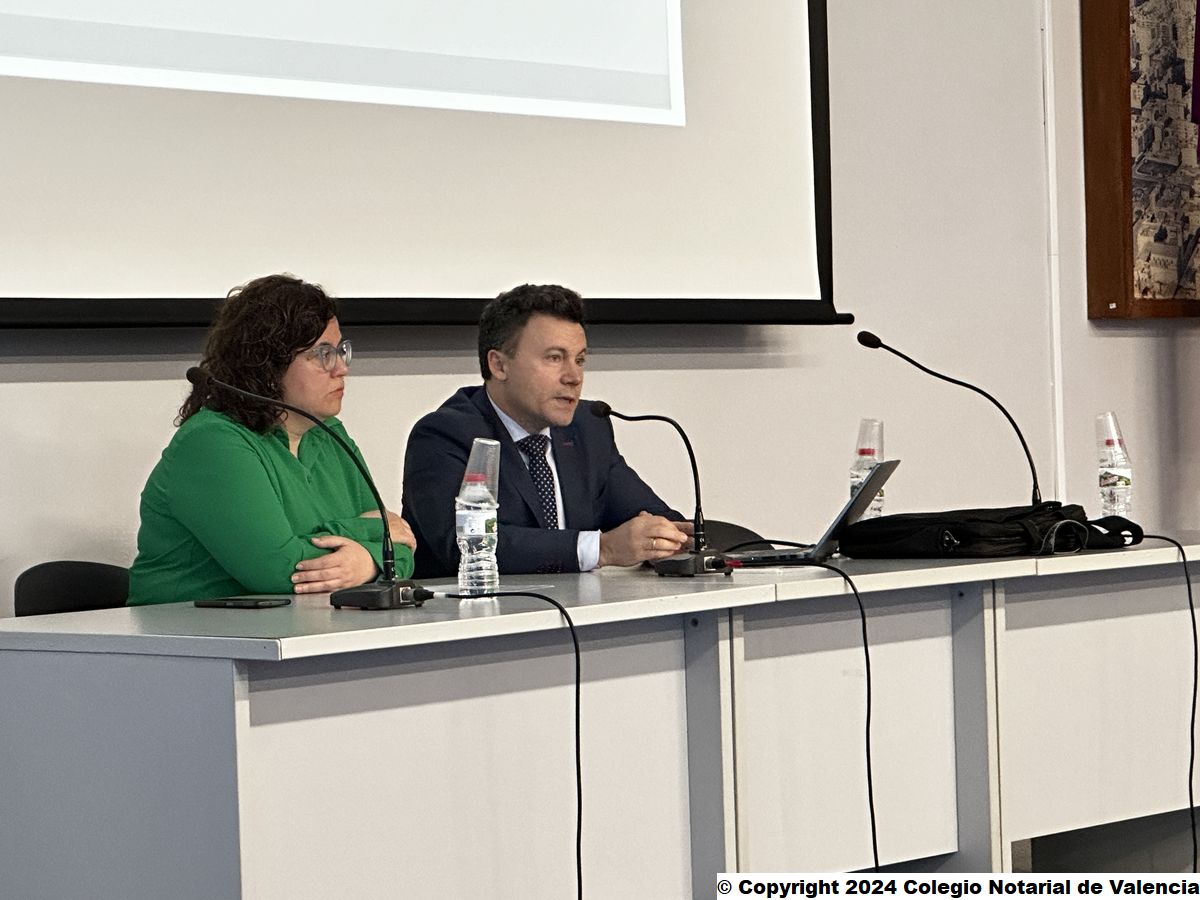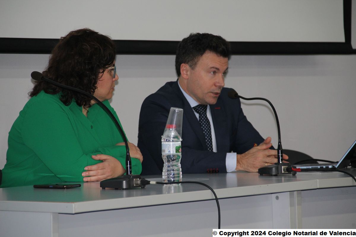 Un momento de la intervención del notario de Gandia, Gonzalo Cano, junto a la secretaria de Astea Safor, Raquel Santiago