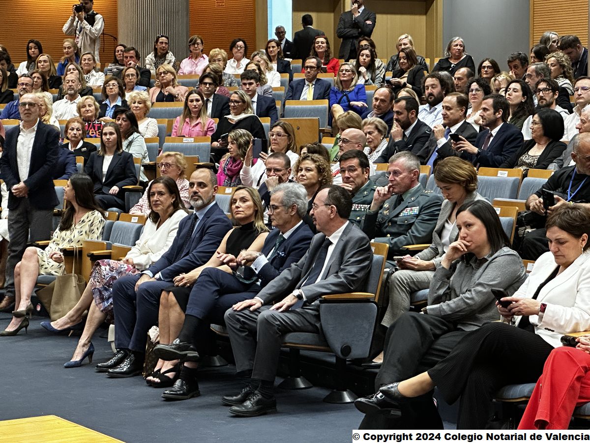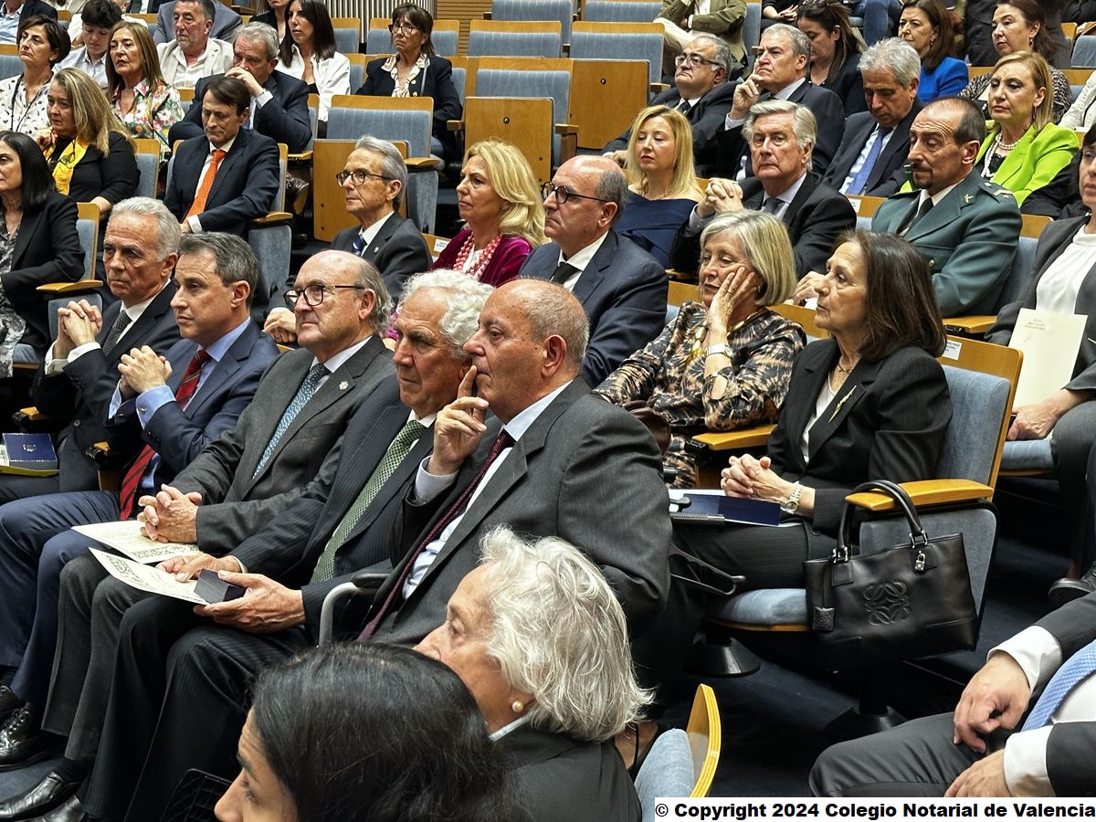 El decano del Colegio Notarial de Valencia, Francisco Cantos; el secretario, José María Cid; así como los censores 1º y 5ª de la Junta Directiva, José Carmelo Llopis y Eva María Peiró asistieron a la entrega de condecoraciones, en un acto que contó también con la presencia de la secretaria general para la Innovación y Calidad del Servicio Público de la Justicia del ministerio de Justicia y exdirectora general de Seguridad Jurídica y Fe Pública, Sofía Puente.