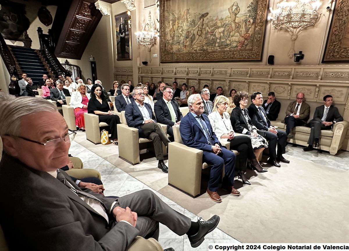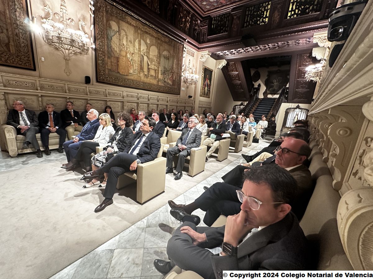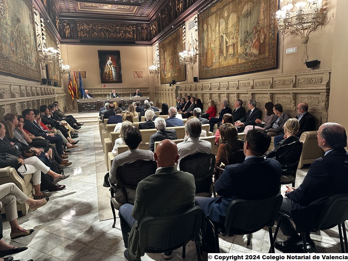 Imagen general de los asistentes al Salón de Actos del Colegio Notarial de Valencia, tras la conferencia de Juan Emilio Iranzo Martín