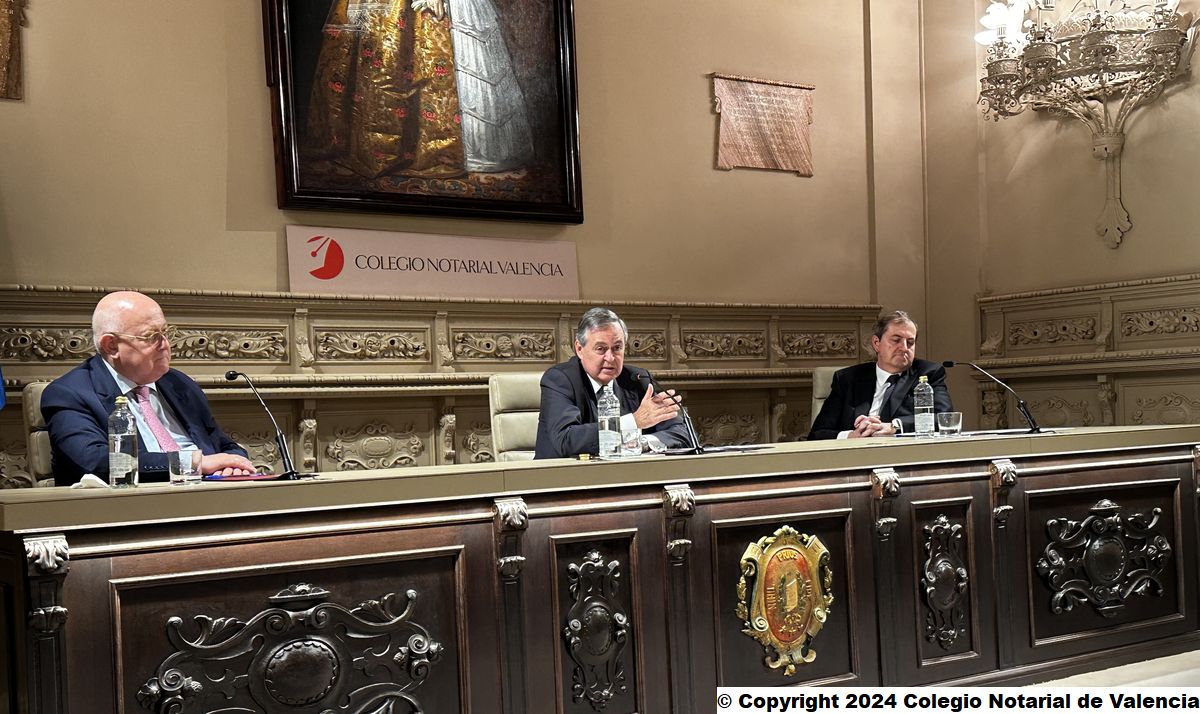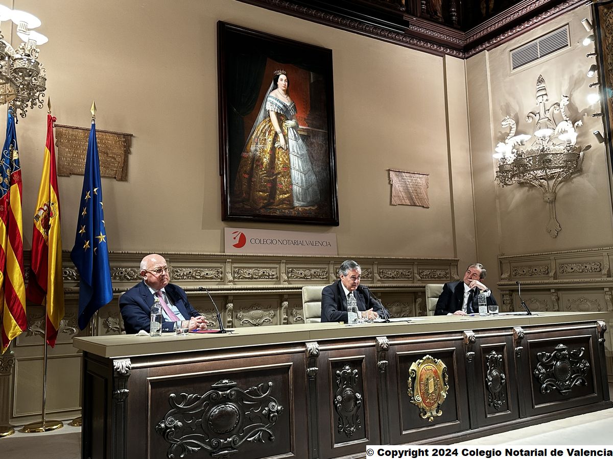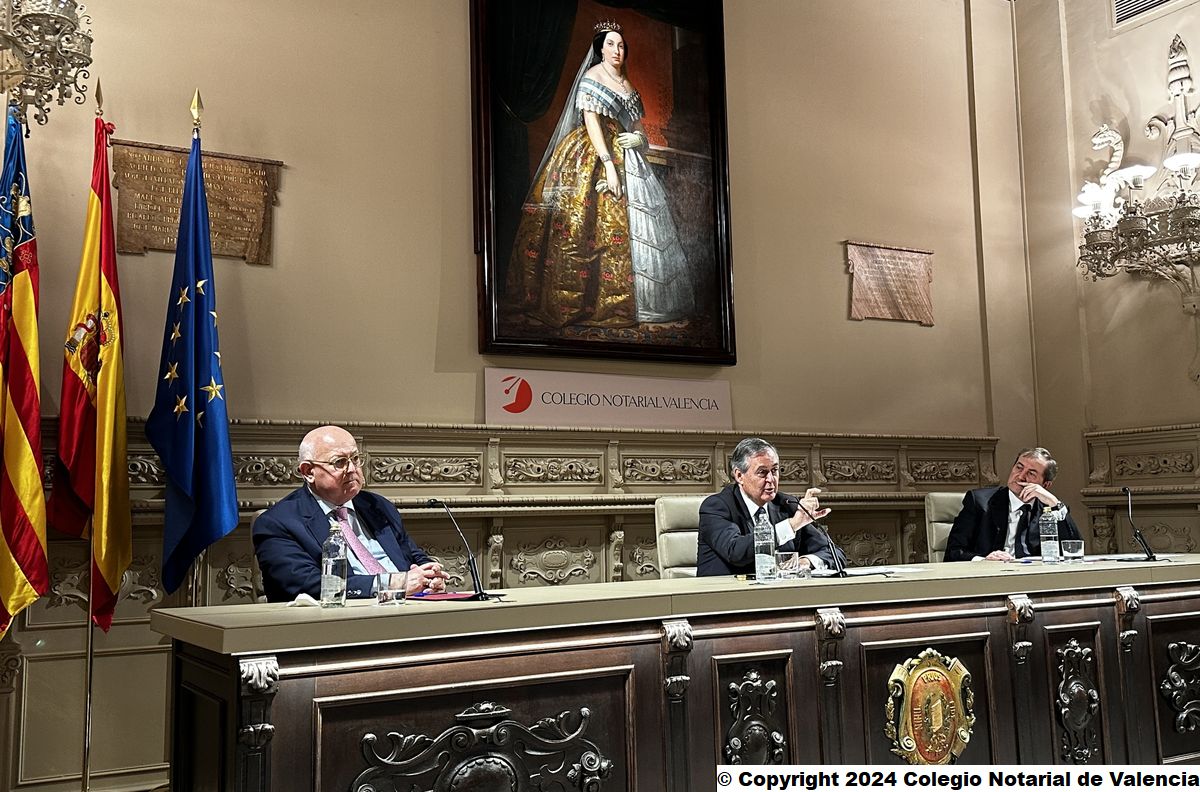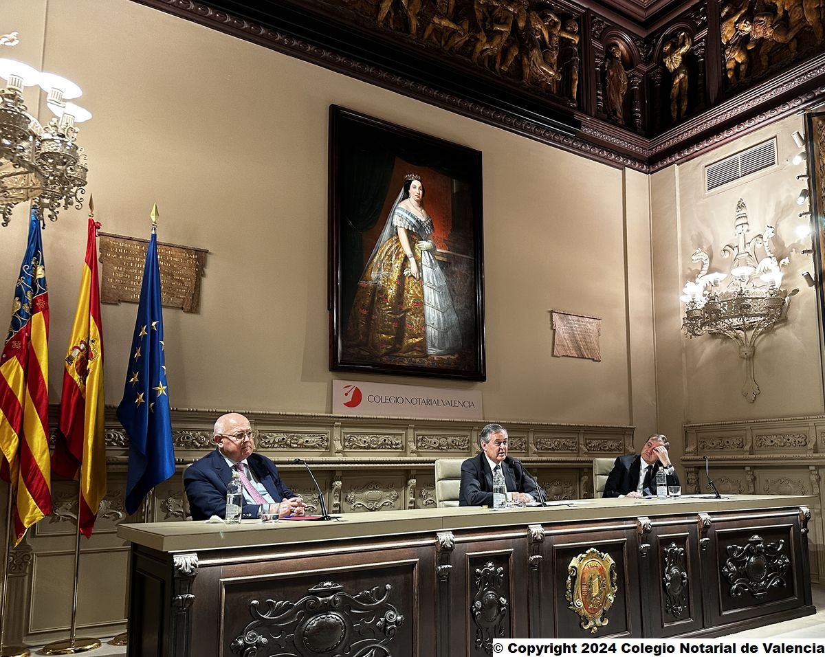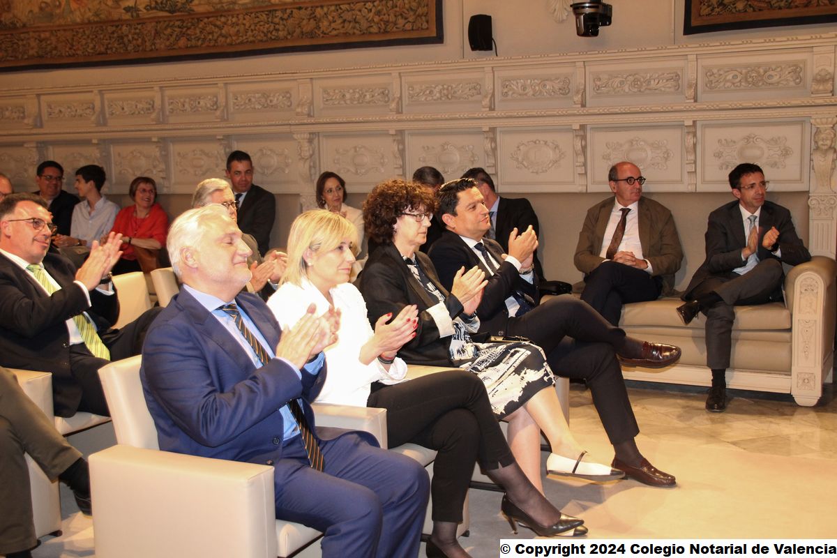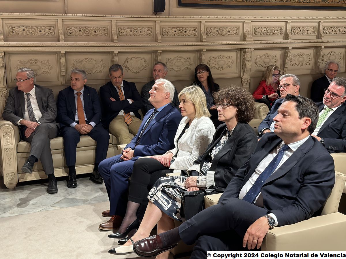 Imagen de algunas de las autoridades asistentes a la conferencia de Juan Emilio Iranzo Martín en el Colegio Notarial de Valencia