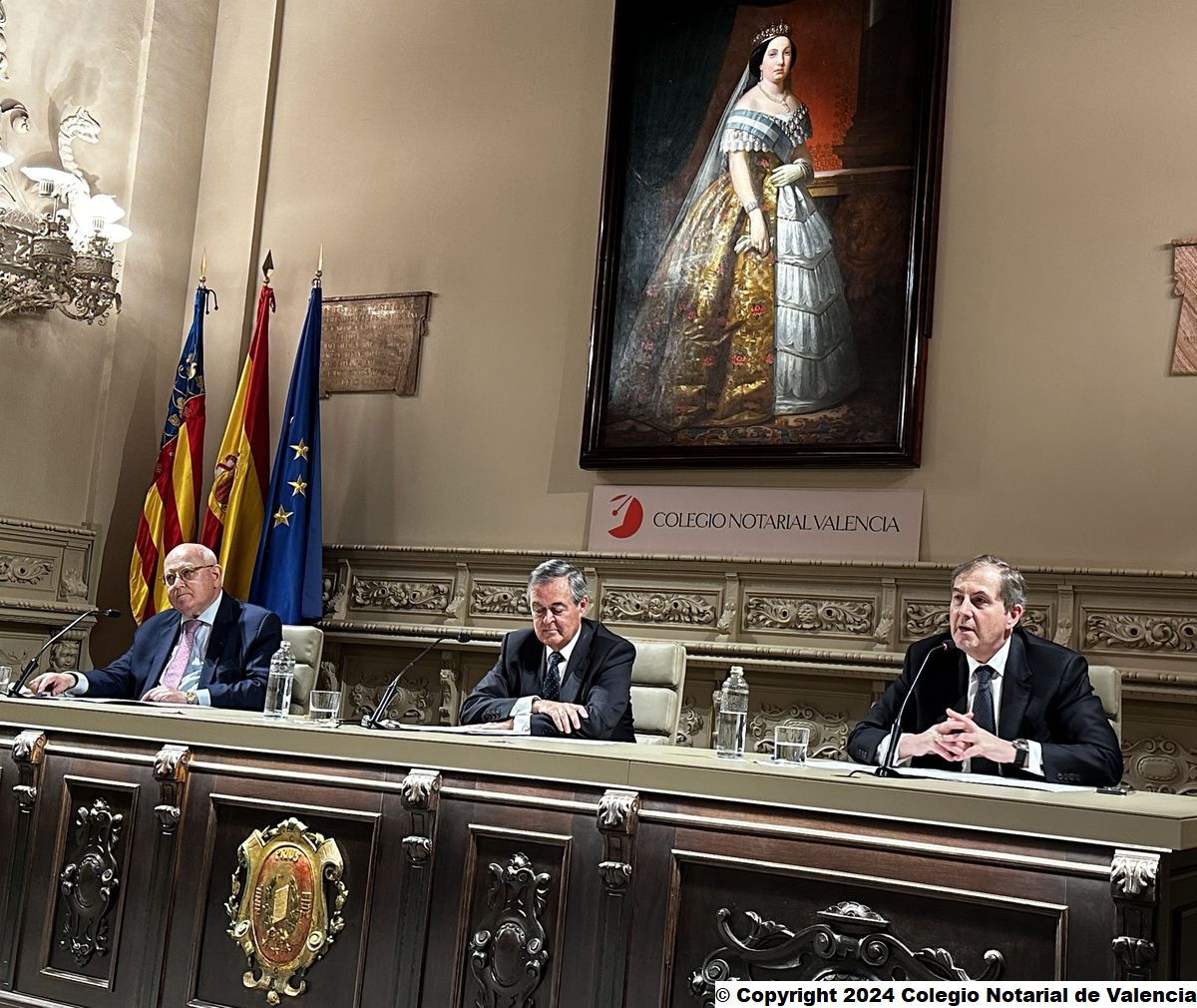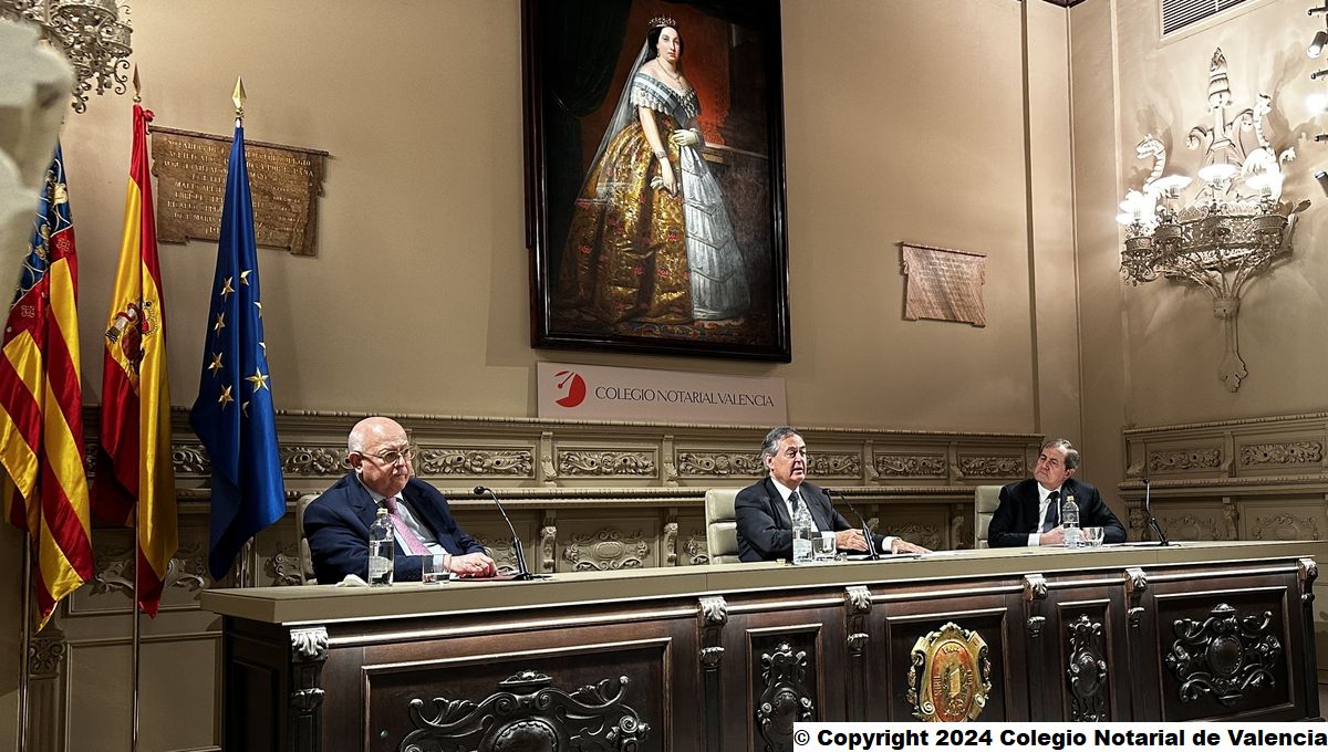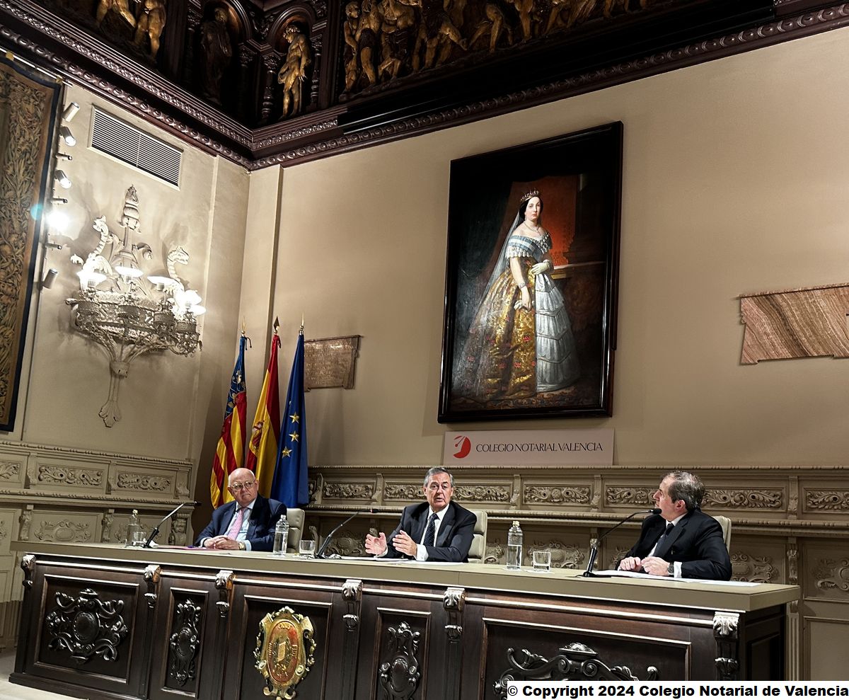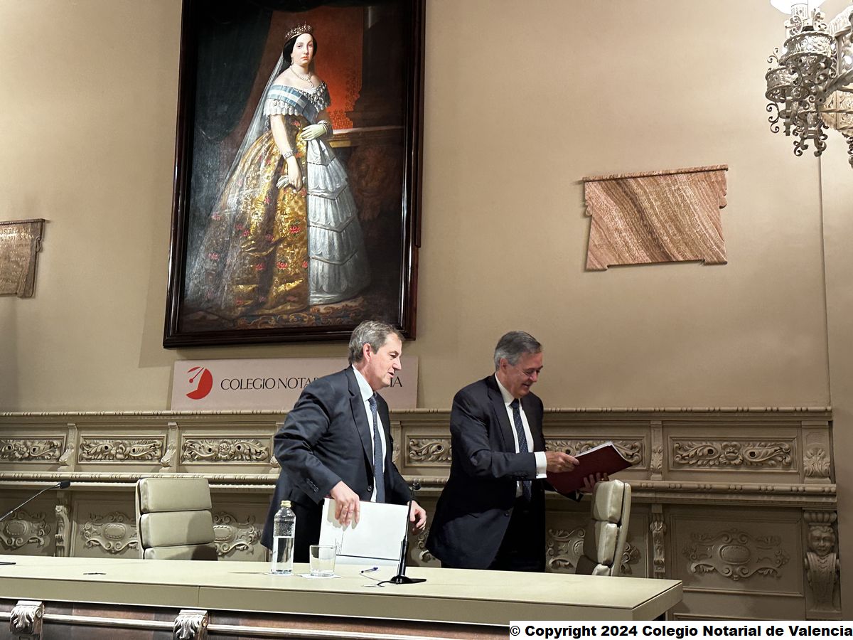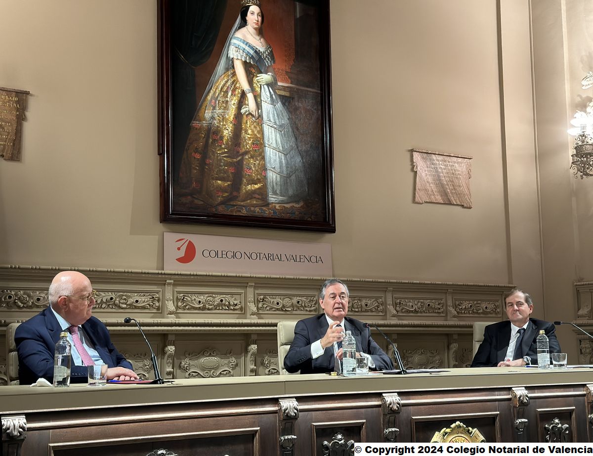 Imagen de algunas de las autoridades asistentes a la conferencia de Juan Emilio Iranzo Martín en el Colegio Notarial de Valencia