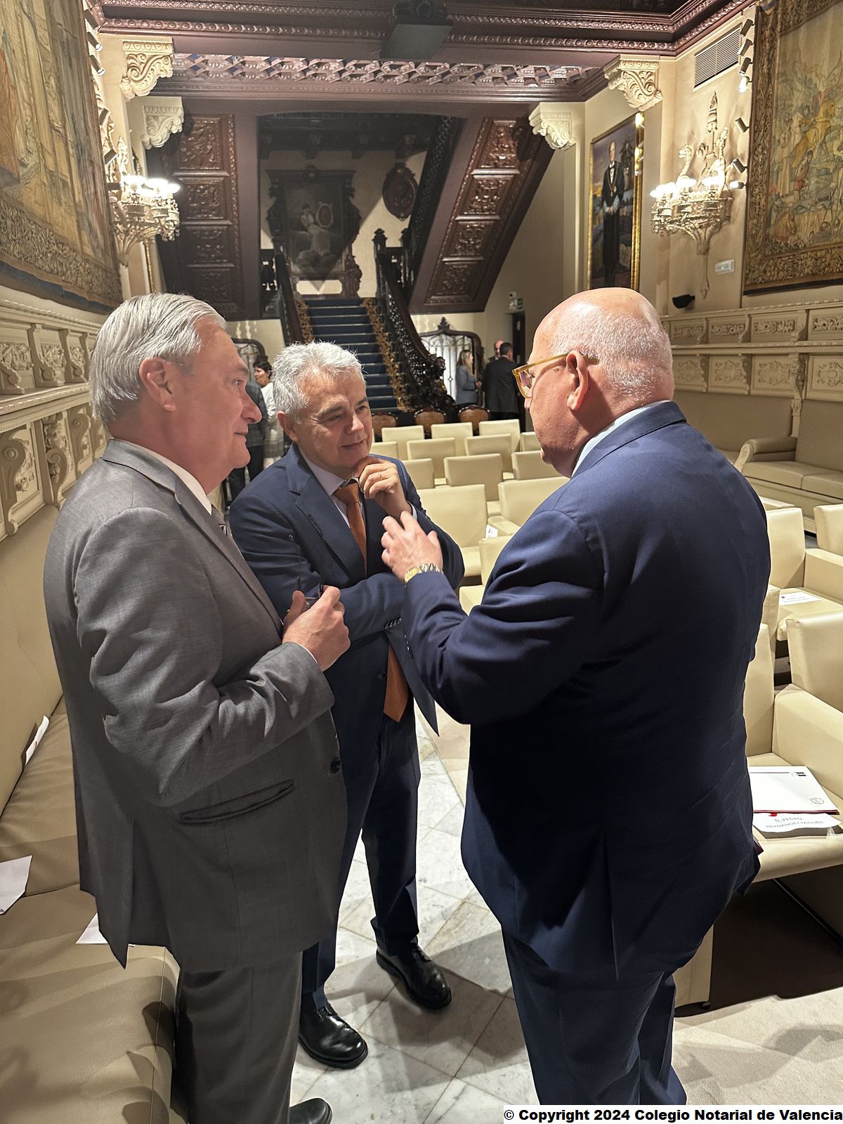 Imagen general de las autoridades saludando a Juan Emilio Iranzo Martín, tras su conferencia en el Colegio Notarial de Valencia