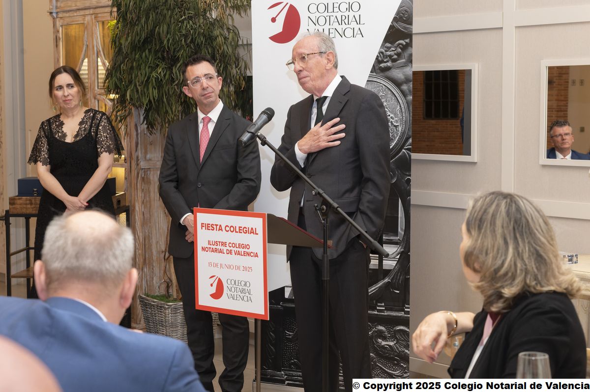 El Ilustre Colegio Notarial de Valencia ha celebrado su fiesta colegial anual, donde ha premiado con la placa “Guillem Ferrer-Lluís Bertran” al exteniente fiscal de la Comunitat Valenciana, Gonzalo López Ebri, por su labor profesional y colaboración con el colectivo notarial en defensa de las personas con discapacidad, personas mayores o en situación de vulnerabilidad.