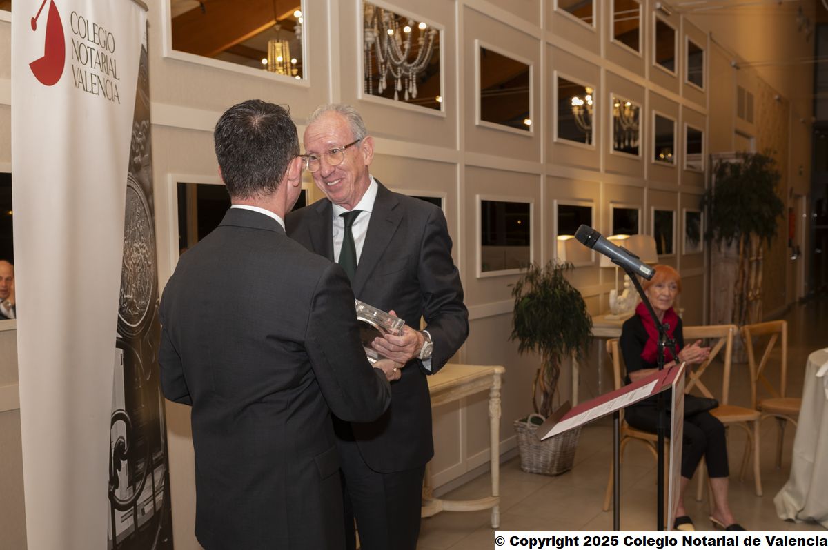 El exteniente fiscal de la Comunidad Valenciana ha recibido el máximo galardón del Notariado valenciano, en la fiesta colegial de 2025, por su estrecha colaboración con el colectivo notarial en la ayuda a las personas con discapacidad o en situación de vulnerabilidad