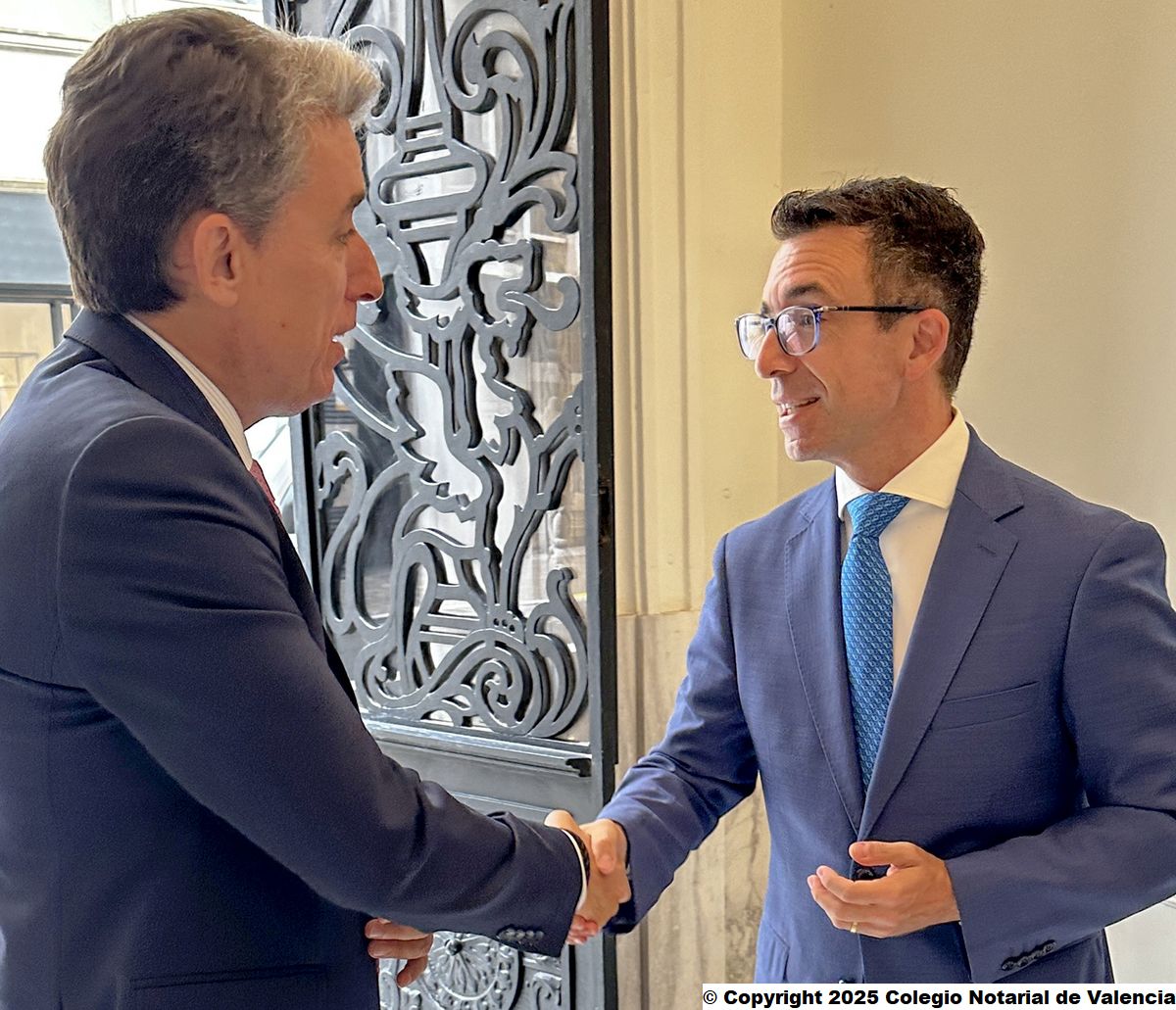 El Colegio Notarial de Valencia ha recibido la visita institucional del nuevo director general de la Agencia Tributaria Valenciana, Ángel Zaera Casado. El decano del Colegio Notarial de Valencia, José Carmelo Llopis Benlloch, ha mantenido una reunión de trabajo con el director general y su equipo técnico con el objetivo de continuar fortaleciendo la colaboración entre ambas entidades.