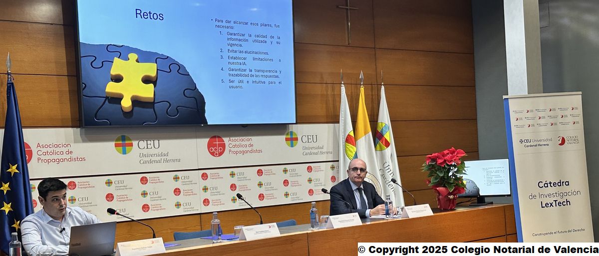 Taller práctico sobre la aplicación de la IA en el ámbito jurídico, dentro de la programación de la Cátedra LexTech de la Universidad CEU Cardenal Herrera y el Colegio Notarial de Valencia