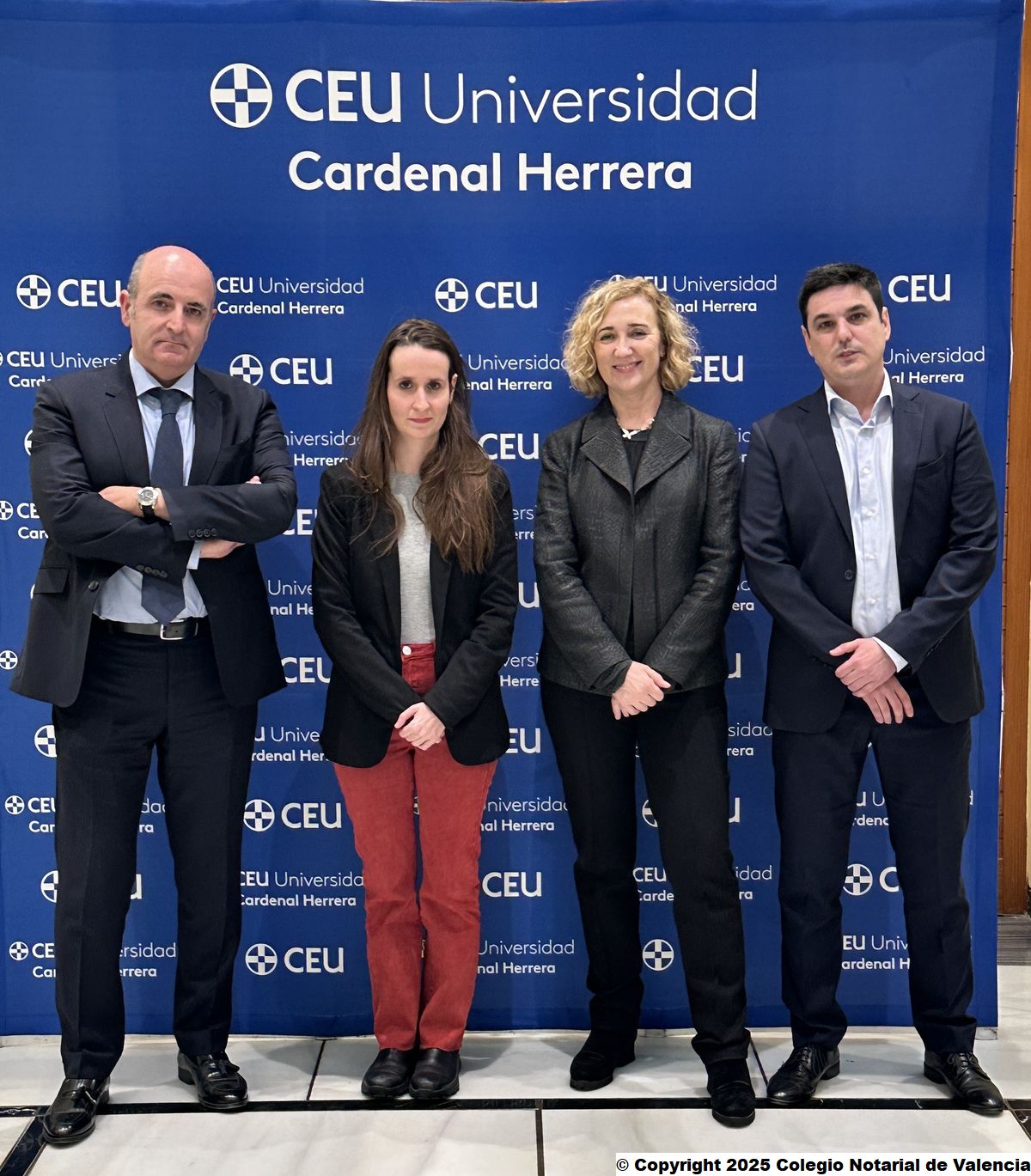 Posado de familia de los directores de la Cátedra LexLech de la Universidad CEU Cardenal Herrera y el Colegio Notarial de Valencia, Eduardo García Parra y Esperanza Ferrando Nicolau; junto a los ponentes, Elen Irazabal y Francisco Gálvez Cejas