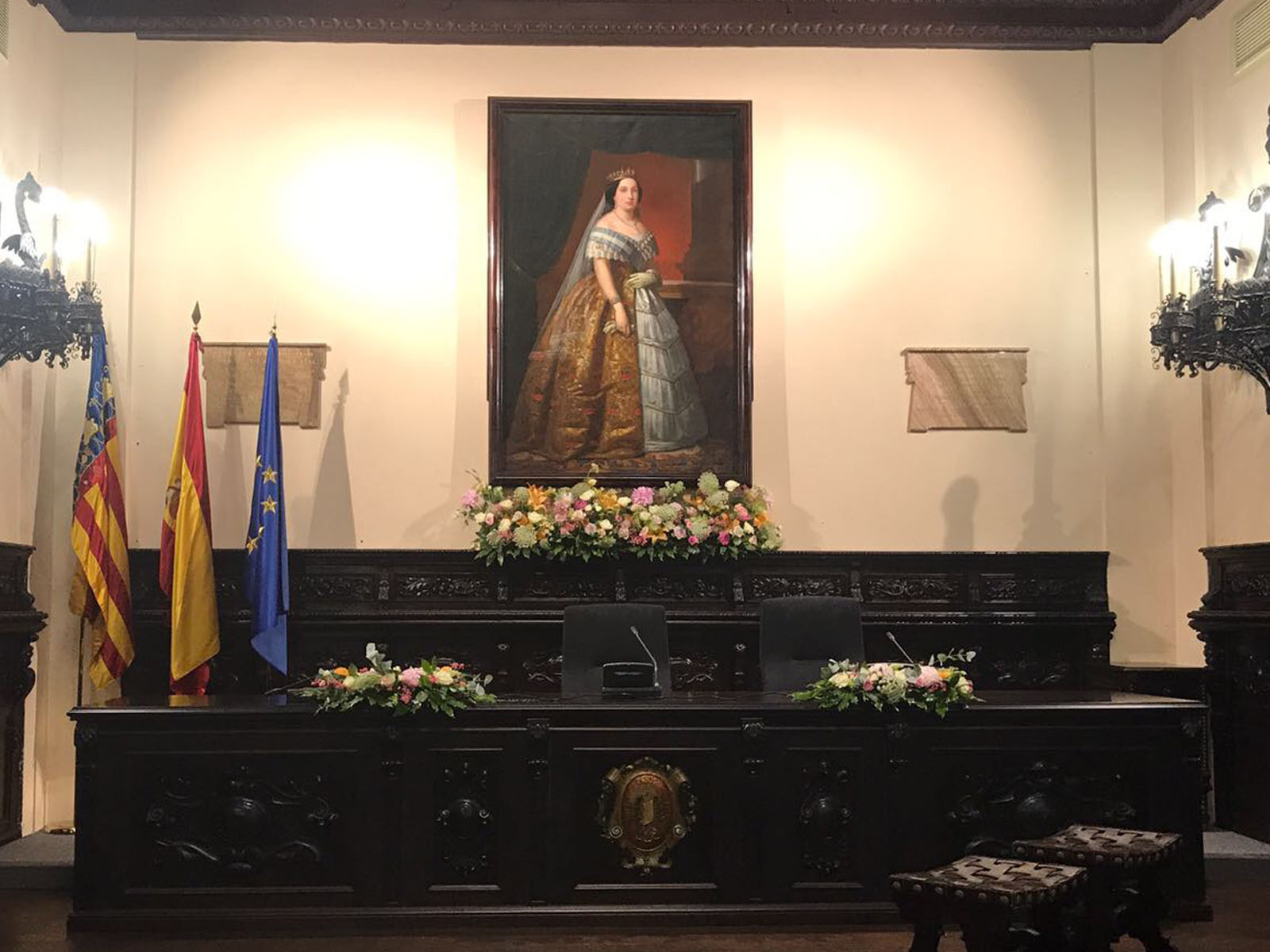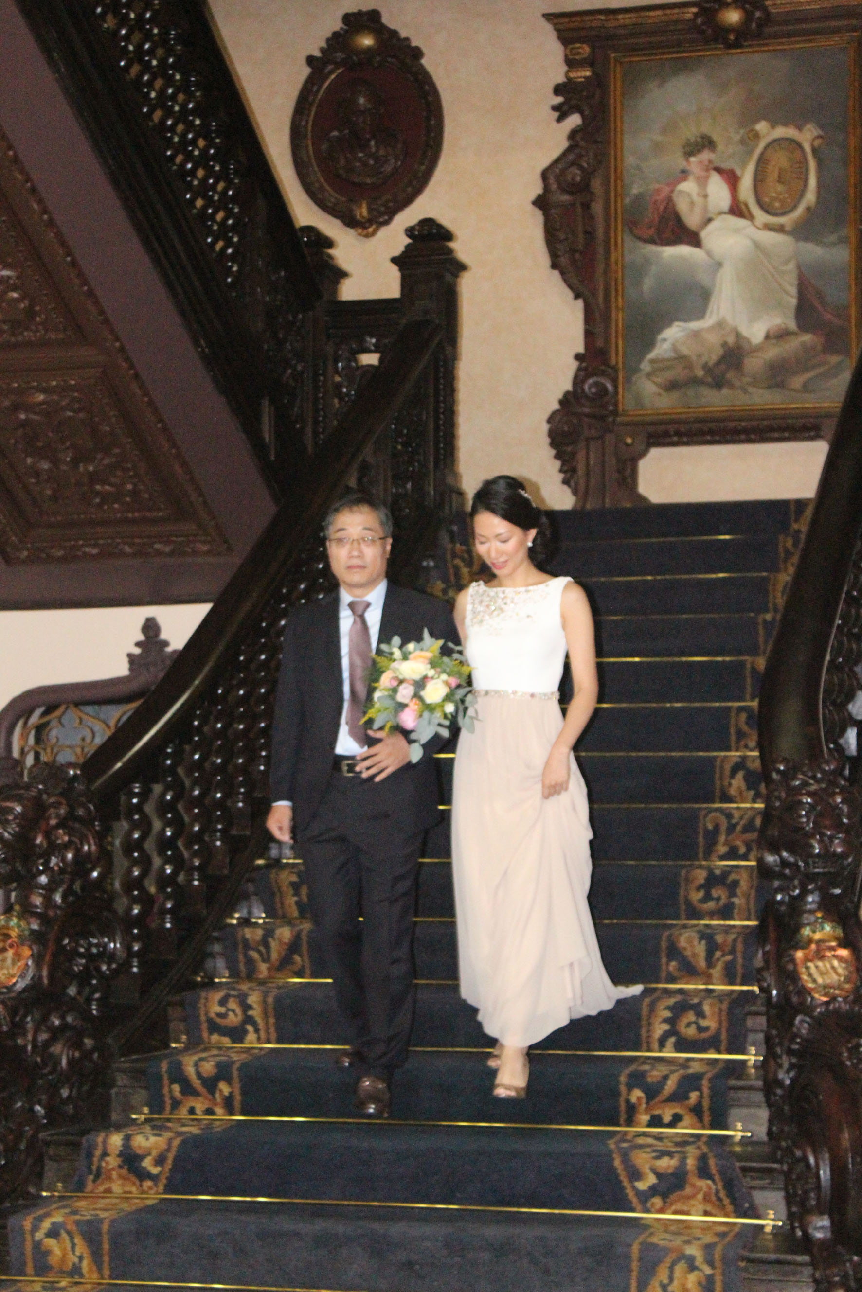 Como manda la tradición, el padre de la novia ha acompañado a Yein hasta el altar, un escenario presidido por el bello retrato al óleo de tamaño natural de la reina Isabel II, no sin antes descender por la gran escalera del noble Salón de la Reina tan especial y utilizada por todos los notarios en sus actos de mayor solemnidad.