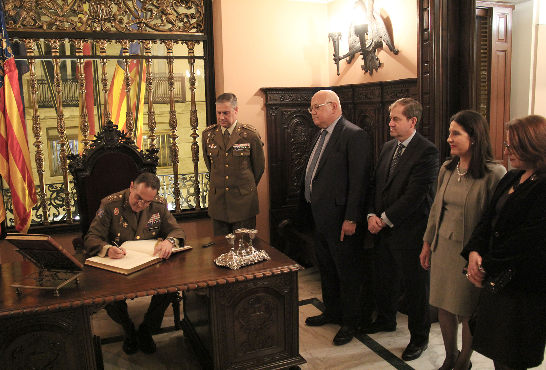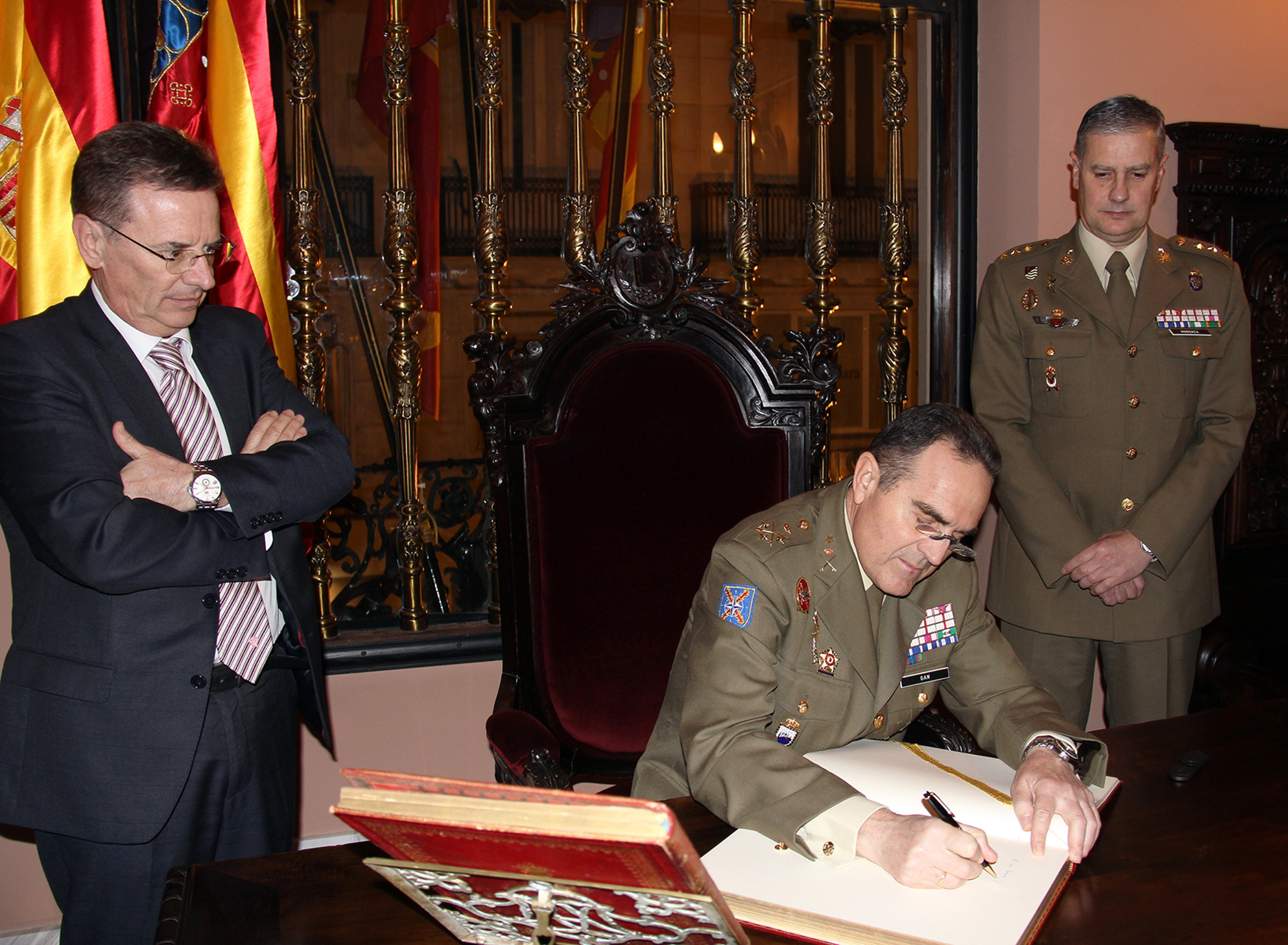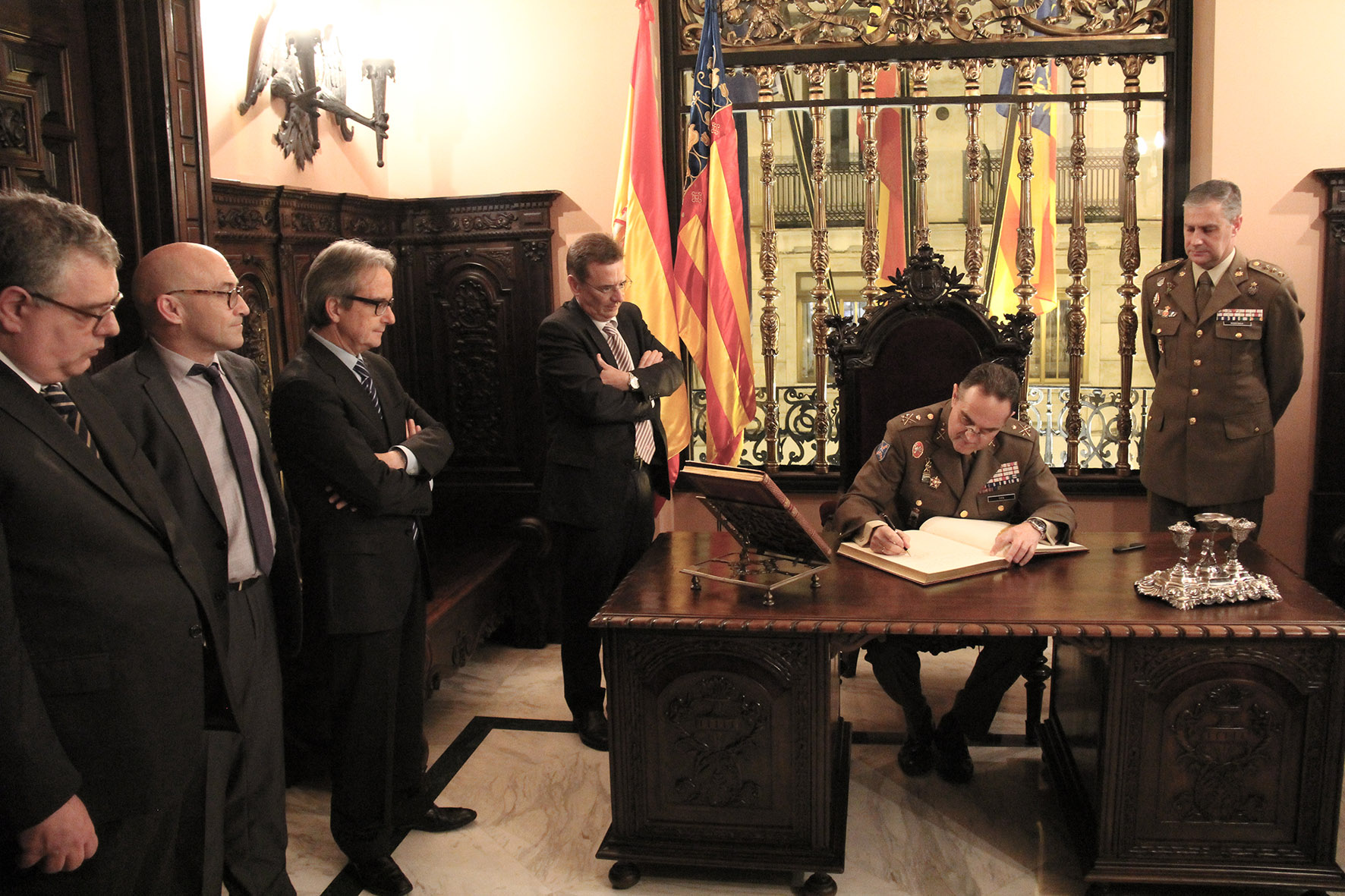 Durante el recorrido por las diferentes estancias nobles de la actual sede colegial, construida en 1883, el teniente general ha firmado en el libro de honor de este colegio que se halla documentado de forma ininterrumpida desde 1.283, siendo el más antiguo de España.