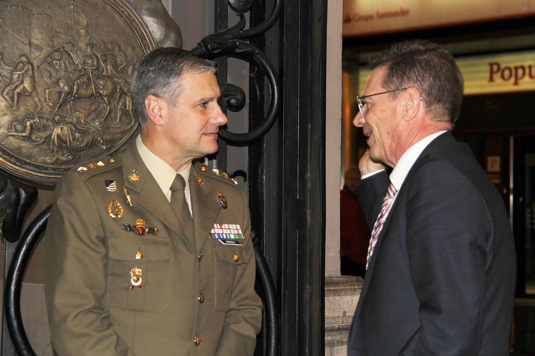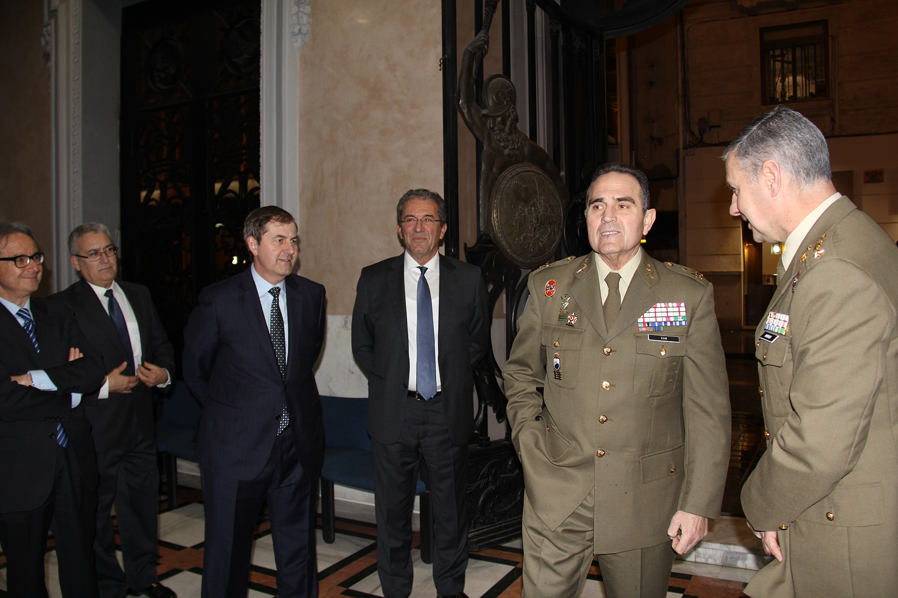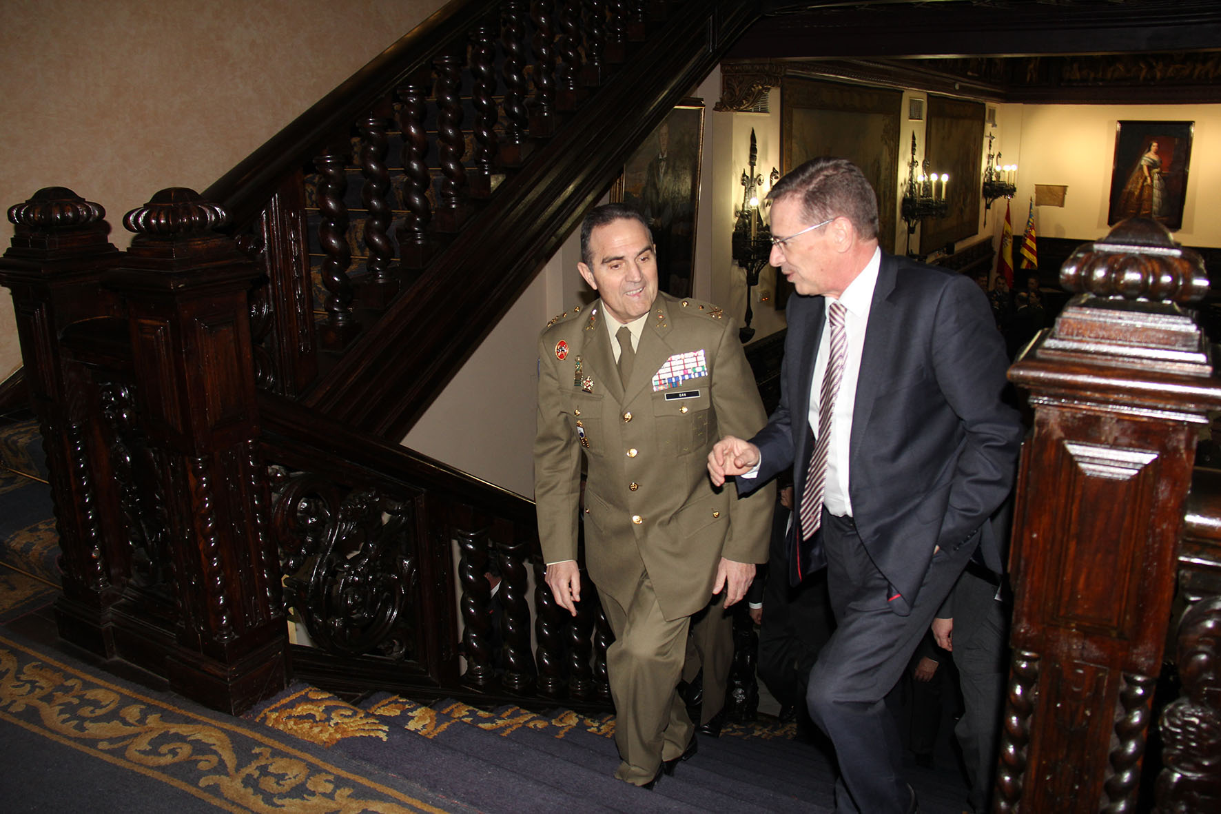 El Colegio Notarial de Valencia ha recibido al jefe del Cuartel General Terrestre de Alta Disponibilidad, el teniente general Francisco José Gan Pampols y al delegado de defensa en la Comunidad Valenciana, coronel Rafael Morenza Tato.