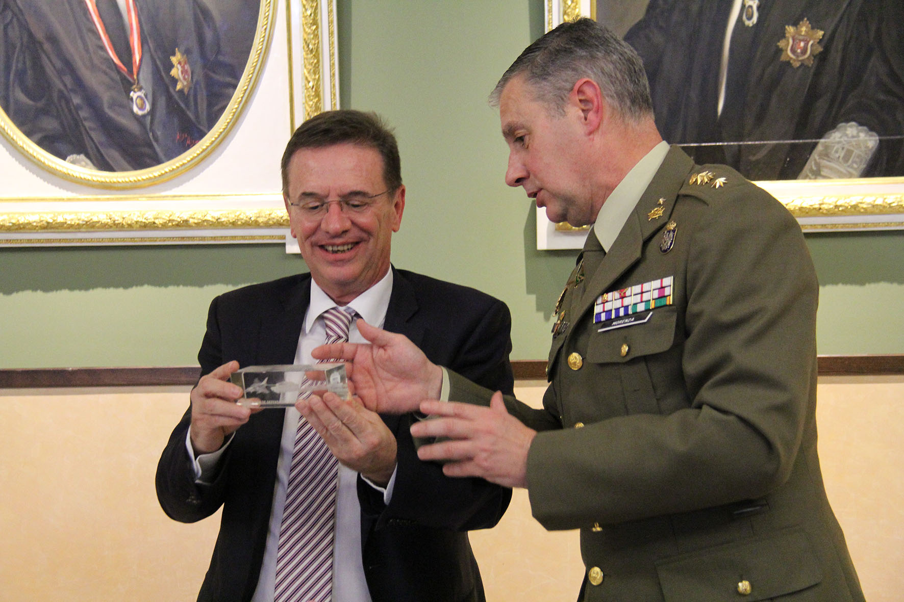 A su vez, el decano del Colegio Notarial de Valencia entregó al teniente general un recuerdo conmemorativo del acto y en su discurso analizó las semejanzas de ambos colectivos que “ponen el contador social a cero, llegando tanto al ejército como al notariado personas de los estratos más humildes que alcanzan las más altas responsabilidades con el propósito de ayudar y proteger a la sociedad”. Y es que para Cantos, “los representantes de las fuerzas armadas ofrecen a la población seguridad de primer grado y sobre ella los notarios constituimos la seguridad de segundo grado, garantizando al ciudadano la seguridad jurídica preventiva necesaria en todas las transacciones por medio de documento público”.