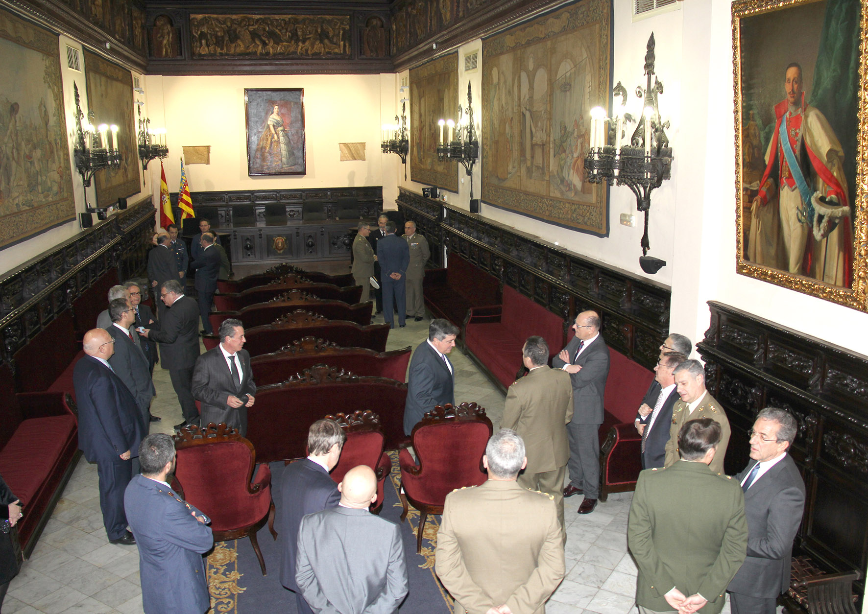 El decano del Colegio Notarial de Valencia, Francisco Cantos, ha recibido a la representación militar junto con los miembros notariales de su Junta Directiva, así como del director del Instituto Valenciano de Estudios Notariales, Juan Montero-Ríos; del director del Instituto Notarial Valenciano de Tecnología y secretario de la Fundación Notarial para la Mediación y el Arbitraje "Solutio Litis" del Colegio Notarial de Valencia, Eduardo García Parra; además de los anteriores decanos, César Belda y Joaquín Borrell.